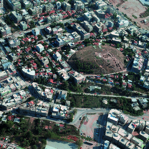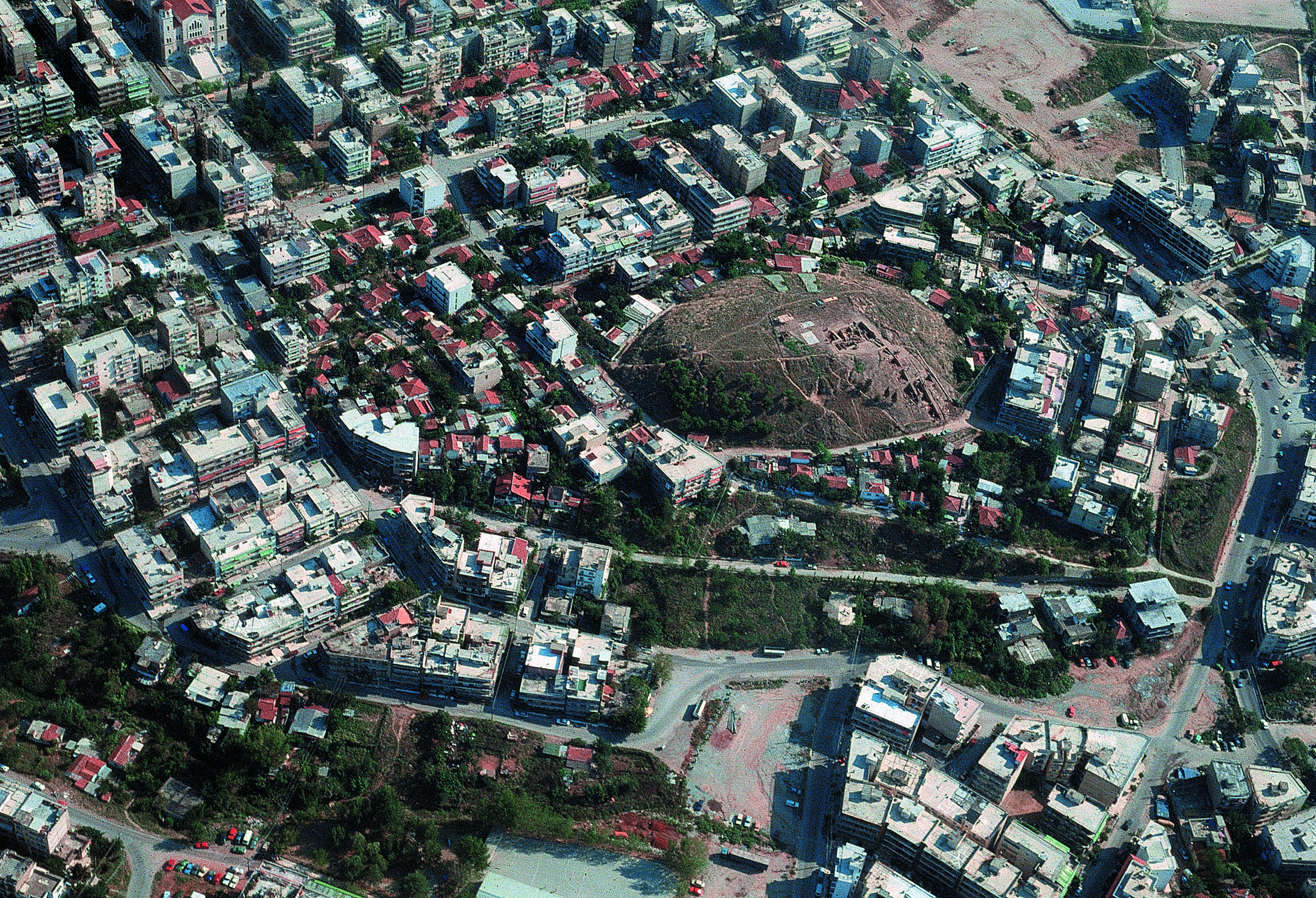 • 8. Τούμπα Θεσσαλονίκης 1996. Άποψη της τούμπας και της τράπεζας, από δυτικά (αεροφωτογραφία από το αρχείο του ΑΠΘ).