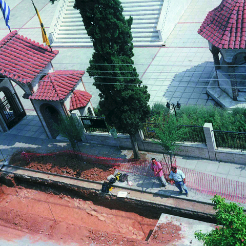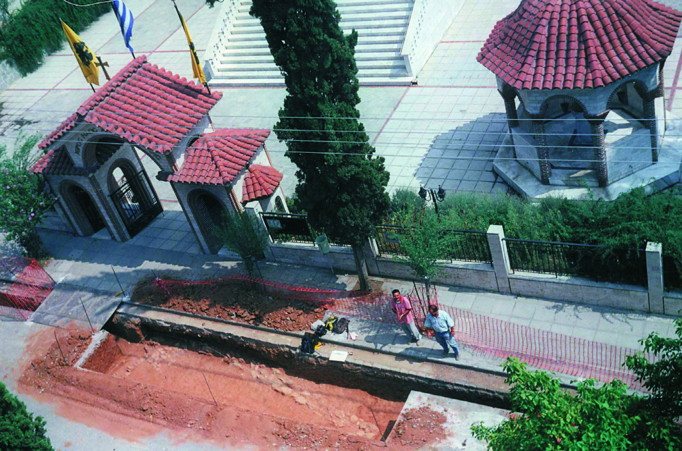 • 23. Τούμπα Θεσσαλονίκης 1997. Λεπτομέρεια ανασκαφής επί της οδού Αγίας Μαρίνας, δυτικά εκτός από την τράπεζα (φωτ. Κ.Σ).