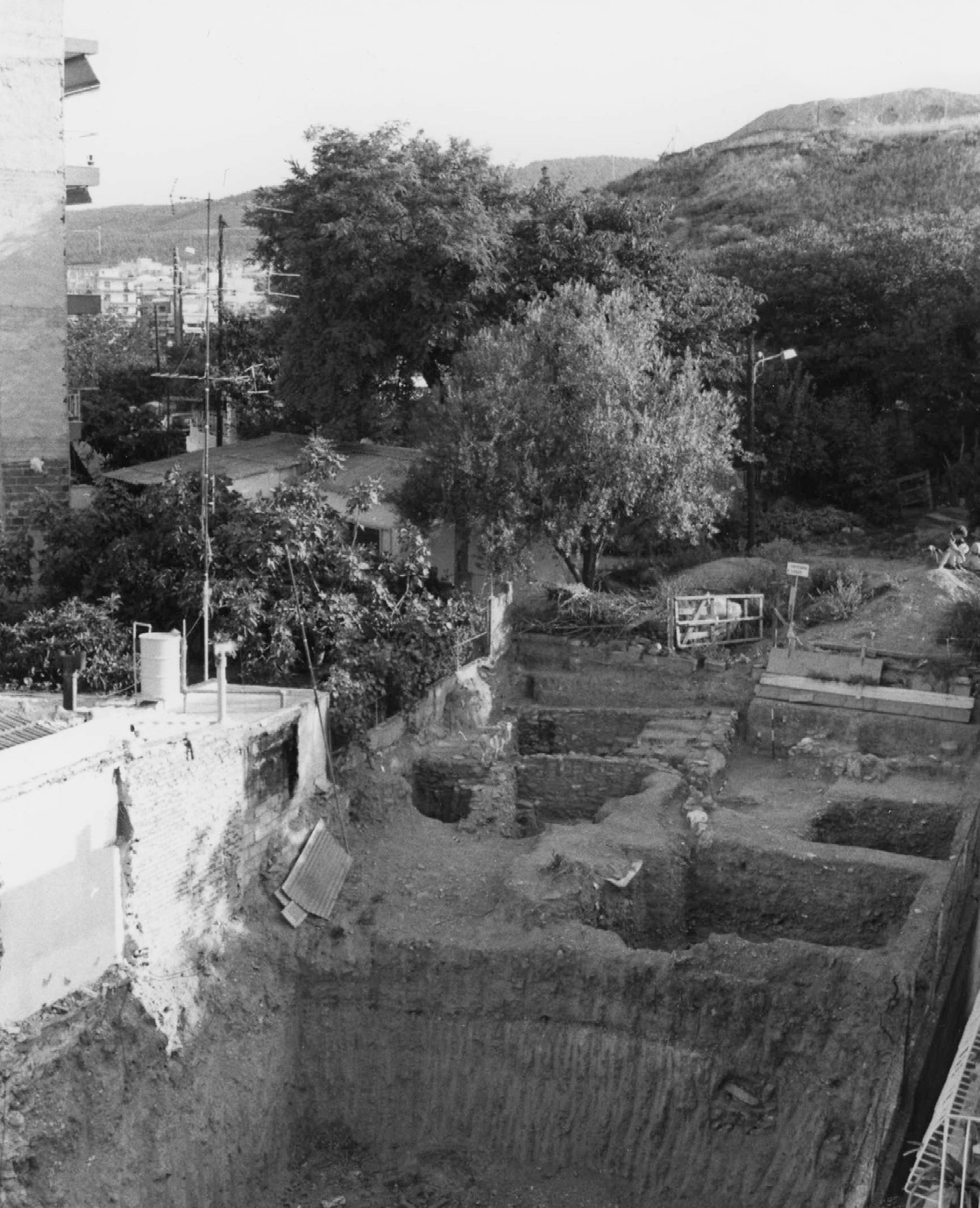 • 9. Τούμπα Θεσσαλονίκης 1991. Αποψη ανασκαφής επί της οδού Ελαίας 13 στην τράπεζα, στους πρόποδες της τούμπας (λοφίσκου), από νοτιοδυτικά (φωτ. Κ.Σ.).