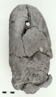 Βρέθηκαν αρκετά τμήματα πιθαριών, δύο μεγάλες ωοειδείς αγνύθες και δύο σφονδύλια (Εικ. 5), ακονόπετρα, δύο κέρατα ελαφιών και λιγοστά οστά ζώων, όλα ευρήματα που είχαν σχέση με τη λειτουργία ενός οικιακού χώρου. Η κεραμική περιλάμβανε κυρίως όστρακα από χειροποίητα αγγεία καθημερινής χρήσης, όπως κύπελλα (Εικ. 6), φιάλες, λεκανίδες,[129] αρκετά με εμπίεστη διακόσμηση στο χείλος,[130] και λιγότερα όστρακα από γκρίζα αγγεία, κυρίως από τροχήλατες πρόχους με στενές αυλακώσεις στο χείλος.