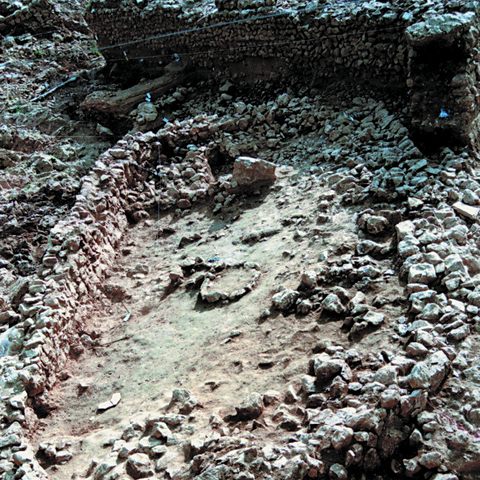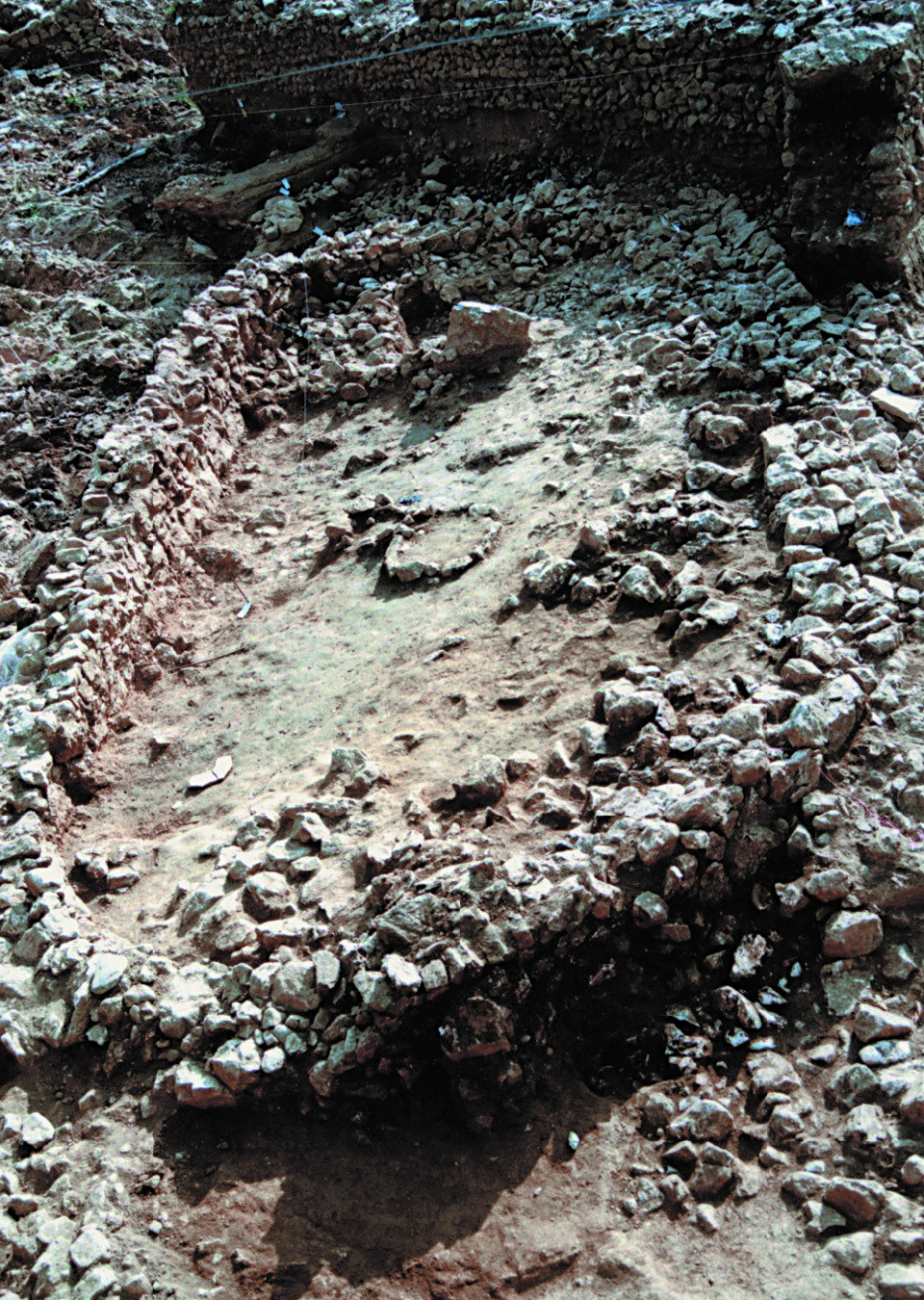 185 Κυκλικός περίβολος από μικρομεσαίες πέτρες, δάπεδο από βότσαλο. Διαμέτρου 0,80 μ. η πρώτη και 0,55 μ. η δεύτερη. Μολονότι υπάρχει κάποια τάση να αποδίδεται ιερός χαρακτήρας στις εστίες, δεν φαίνεται να υπάρχει λόγος που να προκύπτει από τα ευρήματα, όπως εξάλλου και σε άλλες ανάλογες περιπτώσεις. Βλ. Κ. Fagerstom, ό.π., 130.