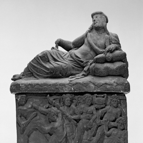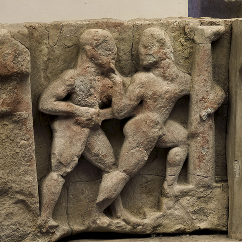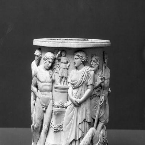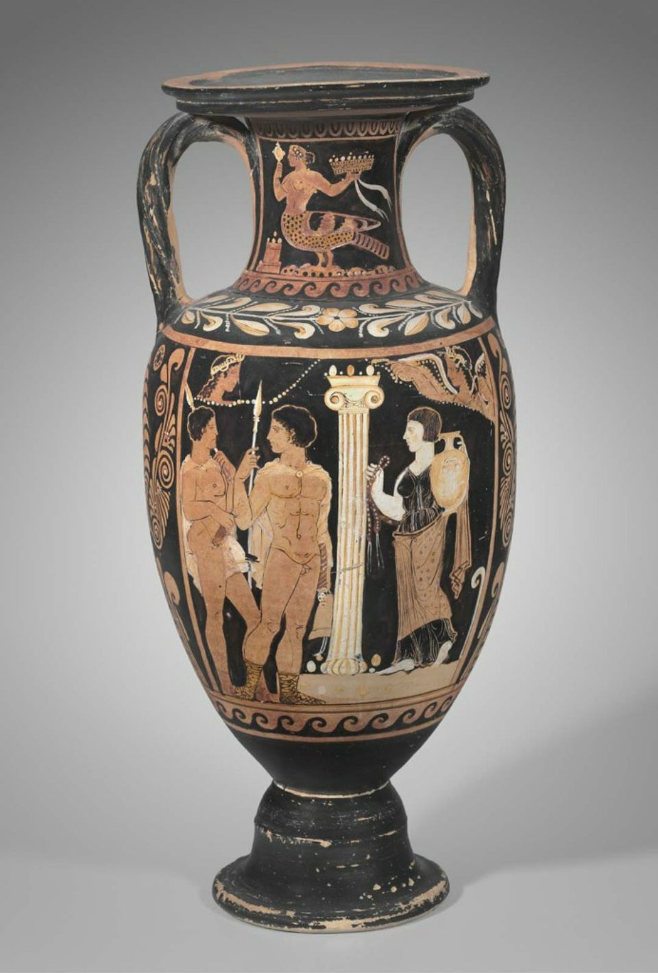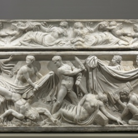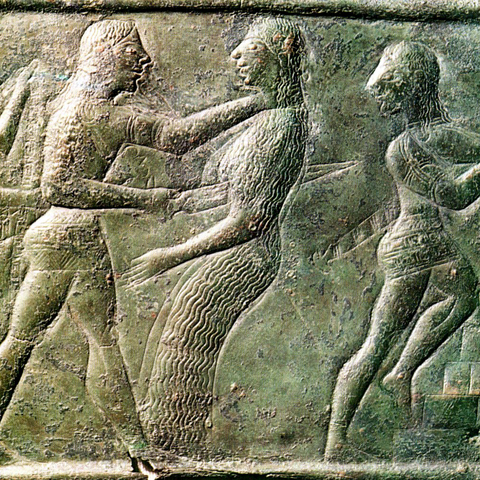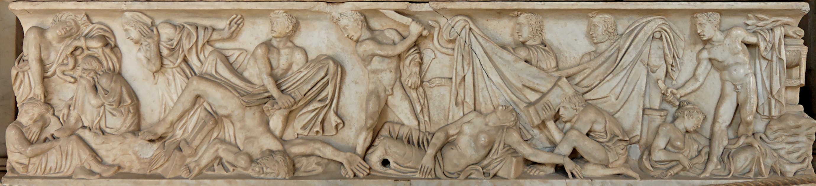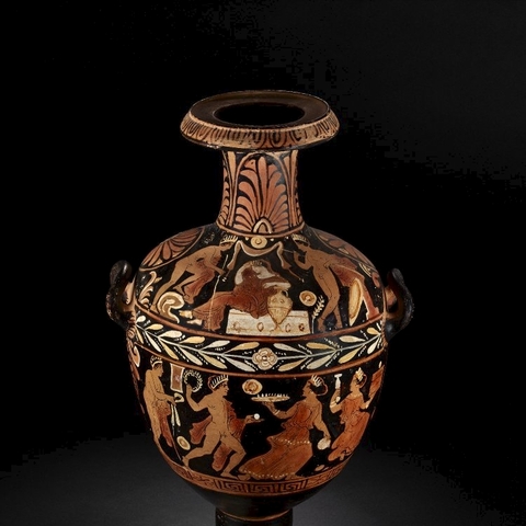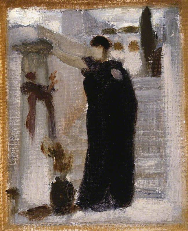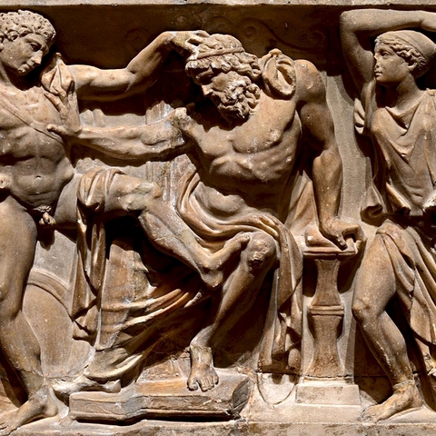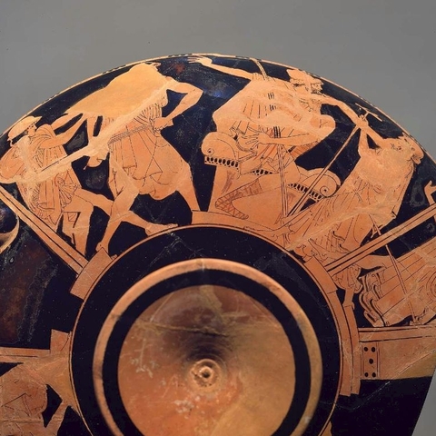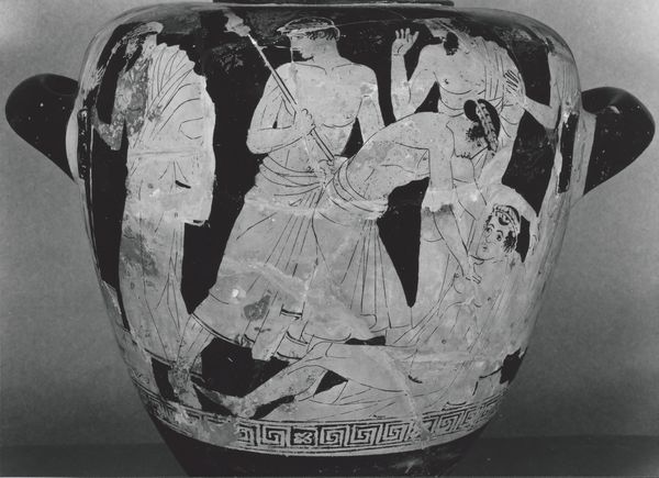Σύμφωνα με την ευριπίδεια εκδοχή, ο Ορέστης σκότωσε τον Αίγισθο την ώρα που πρόσφερε θυσία στις Νύμφες στον κήπο του. Οι φύλακες του βασιλιά διστάζουν να επιτεθούν στον δολοφόνο Ορέστη, τον γιο του Αγαμέμνονα.