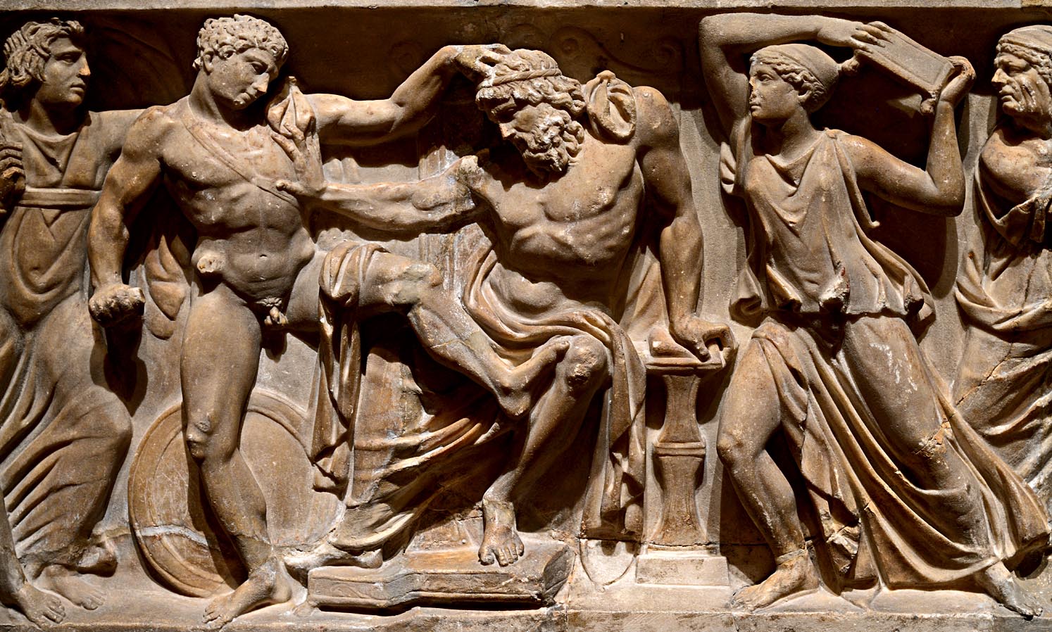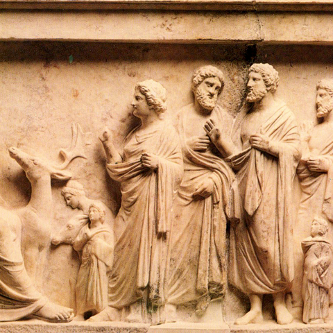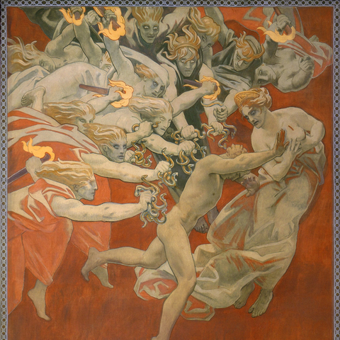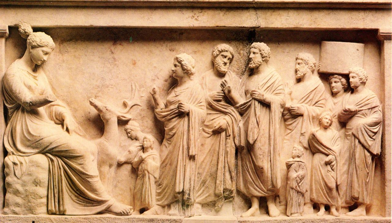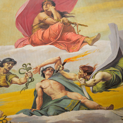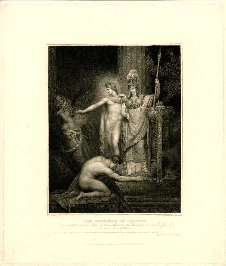 Η τραγωδία Χοηφόροι τελειώνει, όμως στις Ευμενίδες φαίνεται ότι για τον καθαρμό του Ορέστη δεν ήταν αρκετό το άγγιγμα του Λοξία. Θα χρειαστεί και ένα πολιτικό σώμα να αποφανθεί για την αθώωση του Ορέστη, ο Άρειος Πάγος, απόφαση που σφραγίζει το τέλος της σειράς των εκδικήσεων μέσα στους οίκους και την ανάληψη της ευθύνης για την απονομή της δικαιοσύνης από όργανα της πόλεως. Ήταν η πρώτη δικαστική απόφαση του Αρείου Πάγου. (Εικ. 207)
