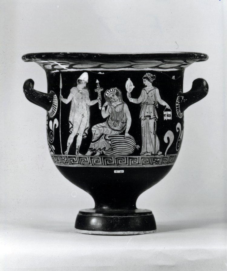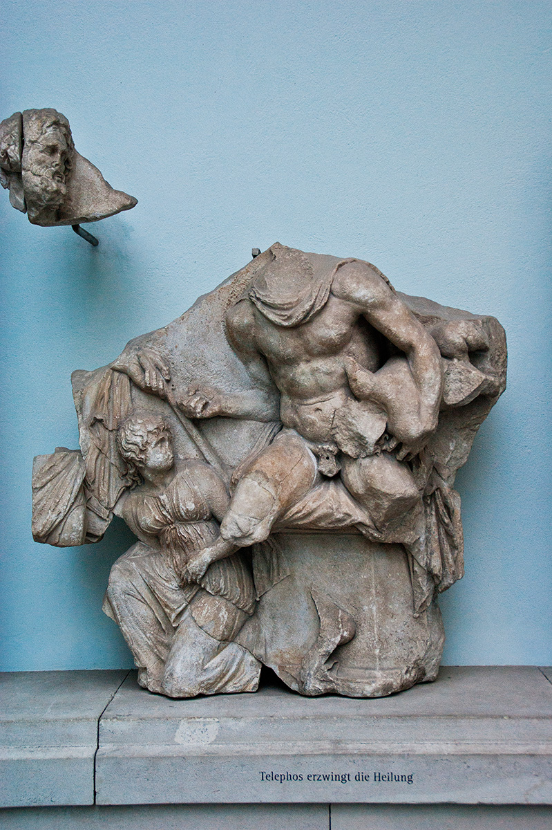 Στην ήδη βεβαρυμένη με τον φόνο του Αγαμέμνονα Κλυταιμνήστρα, ο Ευριπίδης θα φορτώσει και το γεγονός ότι ο Τήλεφος χρησιμοποίησε τον μικρό Ορέστη ως όμηρο στον βωμό, όπου είχε προσπέσει ικέτης, προκειμένου να πείσει τους Αχαιούς να του γιατρέψουν την παλιά πληγή από το δόρυ του Αχιλλέα. Το επεισόδιο αυτό τοποθετείται στην Αυλίδα, όταν ο στρατός των Αχαιών είχε συγκεντρωθεί για δεύτερη φορά μετά την αποτυχημένη πρώτη φορά, που είχαν καταλήξει στο βασίλειο του Τήλεφου στη Μυσία, αντί για την Τροία. Εκεί και τότε τον είχε τραυματίσει ο Αχιλλέας. Ο Ευριπίδης, πάλι, θέλει τον Ορέστη στην Αυλίδα, όταν με δόλο έφερε ο Αγαμέμνονας τη γυναίκα του και την κόρη τους Ιφιγένεια, προκειμένου να τη θυσιάσει στην Άρτεμη. (Εικ. 177, 178, 179, 180, 181, 182, 183, 184)