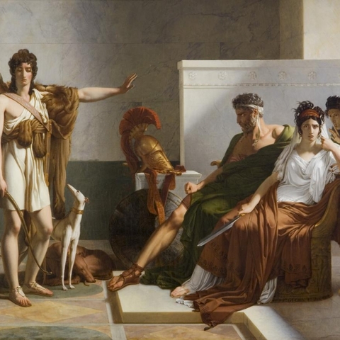 Η Φαίδρα ερωτεύτηκε τον προγονό της Ιππόλυτο, γιο του Θησέα από την Αμαζόνα Ιππολύτη, ξακουστό για την ομορφιά του, αθλητικό, πιστό στην παρθένα Άρτεμη του κυνηγιού. Τον γνώρισε για πρώτη φορά στην Τροιζήνα, σε ταξίδι που έκανε μαζί με τον Θησέα, στο παλάτι του Πιτθέα, παππού του Θησέα από την πλευρά της μητέρας του Αίθρας. Εκεί τον είχε στείλει ο πατέρας του πριν από τον γάμο του με τη Φαίδρα, ώστε ο μεν Ιππόλυτος να διαδεχόταν τον Πιτθέα στην εξουσία της Τροιζήνας, ενώ τα παιδιά του με την καινούρια γυναίκα να τον διαδεχτούν στην Αθήνα. Έτσι, αποφεύγονταν οι διαμάχες για τη διαδοχή και εξασφαλιζόταν η ειρήνη. Μυθολογείται ότι, εκεί, στην Τροιζήνα, στο ιερό της Αφροδίτης υπήρχε μια μυρτιά πίσω από την οποία στεκόταν η Φαίδρα και έβλεπε τον Ιππόλυτο να γυμνάζεται στο παρακείμενο στάδιο -εξού και η επωνυμία της Αφροδίτης ως Κατασκοπίας. Τα φύλλα αυτής της μυρτιάς τρυπούσε αμήχανα με την περόνη των μαλλιών, κι έτσι εξηγούσαν οι αρχαίοι την όψη τους, όχι μόνο της συγκεκριμένης αλλά όλων.