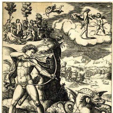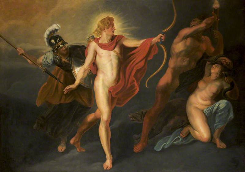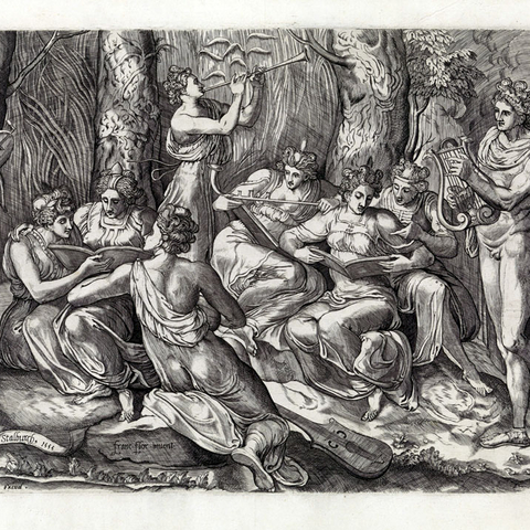 Ο Απόλλωνας με νύμφες και Σάτυρους, ενώ ο Ερμής κλέβει τα βόδια του Άδμητου.Πηγή: