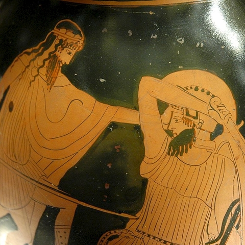 Για τον Όμηρο και οι δυο θεοί είναι άγριοι, και οι δυο κατάγονται από τη Θράκη, και οι δυο υπερβαίνουν τα όρια. Στη Γιγαντομαχία ο Διόνυσος εμφανίζεται ως ισχυρός πολεμιστής που πολεμά και με δόρυ (Εικ. 110) και συμπορεύεται με τον Άρη. Εξάλλου, ο Διόνυσος εμφανίζεται και ως κατακτητής της Ανατολής, πρότυπο αργότερα για τον Μ. Αλέξανδρο. Και ακόμη: Και οι δυο θεοί σχετίζονται με τη Θήβα, ο Άρης ως γενάρχης των Θηβαίων και του βασιλικού οίκου της πόλης, ο Διόνυσος ως γόνος της κόρης του ιδρυτή της πόλης Κάδμου από τον Δία.