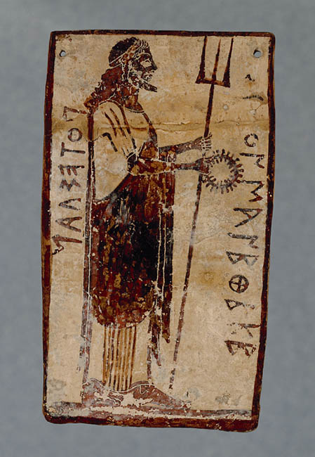 2 Σε μελαμβαφές όστρακο του 5ου αι. π.Χ. από το Ποσείδι Χαλκιδικής, ο άγνωστος αναθέτης επικαλείται με αναθηματική επιγραφή τη βοήθεια του γαιαόχου κυανοχαίτα Ποσειδώνα, επαναλαμβάνοντας ίσως στίχο της Οδύσσειας, όπου ο κύκλωπας Πολύφημος απευθύνεται στον πατέρα του Ποσειδώνα: Κλυθι, Ποσείδαον, γαιήοχε, κυανοχαίτα - Άκουσε Ποσειδώνα, της Γης αφέντη γαλαζόχαιτε (ι, 528). Και στο Τσιφλίκι της Νάουσας σε αναθηματική, από γυναίκα, πλάκα με ανάγλυφη παράσταση ανδρικού μορίου αναγράφεται η δίστιχη επιγραφή ΠΟΣΕΙΔΩΝΙ ΚΑΤ ΕΥΧΗΝ.