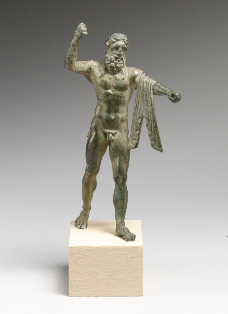 Το πρώτο συνθετικό του θεού, ποτει- (=κύριος, δεσπότης) φανερώνει θεό με διευρυμένες ιδιότητες και πεδία εξουσίας. Πράγματι, ο Ποσειδώνας, εκτός από θεός των αλμυρών υδάτων, ήταν συνδεδεμένος και με τη γη και τα φαινόμενα που σχετίζονται με αυτή, όπως δηλώνουν τα επίθετα και οι χαρακτηρισμοί Γαίης Κινητήρ, Γαιήοχος (=κάτοχος της γης), Μοχλευτήρ, Σεισίχθων, Ελασίχθων, Εννοσίγαιος, Ενοσίχθων (αυτός που κάνει τη γη να τρέμει, που προκαλεί σεισμούς και κατακλυσμούς), Δαμασίχθων (ο δαμαστής), Ασφάλειος[1], (Εικ. 38, 39, 40) καθώς και το γεγονός ότι ήταν σύζυγος της Δας, της Γης, συγκυρίαρχος των Δελφών μαζί της, σύζυγος της Δήμητρας, γνωστός από τις πινακίδες της Κνωσού και της Πύλου, δηλαδή ήδη από τη μυκηναϊκή εποχή. (Εικ. 41, 42) Επιπλέον, διάφορα ευρήματα υποδεικνύουν τη χθόνια υπόσταση του Ποσειδώνα. Ενδεικτικά αναφερόμαστε σε δύο: Σε αναθηματική επιγραφή που βρέθηκε στο Ποσείδι στη Χαλκιδική, σε μελαμβαφές όστρακο του 5ου αι. π.Χ., ο άγνωστος αναθέτης επικαλείται τη βοήθεια του «γαιαόχου κυανοχαίτα» Ποσειδώνα, επαναλαμβάνοντας ίσως στίχο της Οδύσσειας, όπου ο κύκλωπας Πολύφημος απευθύνεται στον πατέρα του Ποσειδώνα: κλῦθι͵ Ποσείδαον γαιήοχε κυανοχαῖτα (Οδ., ι 528). Και στο Τσιφλίκι της Νάουσας σε αναθηματική, από γυναίκα, πλάκα με ανάγλυφη παράσταση ανδρικού μορίου αναγράφεται η δίστιχη επιγραφή ΠΟΣΕΙΔΩΝΙ ΚΑΤ ΕΥΧΗΝ.