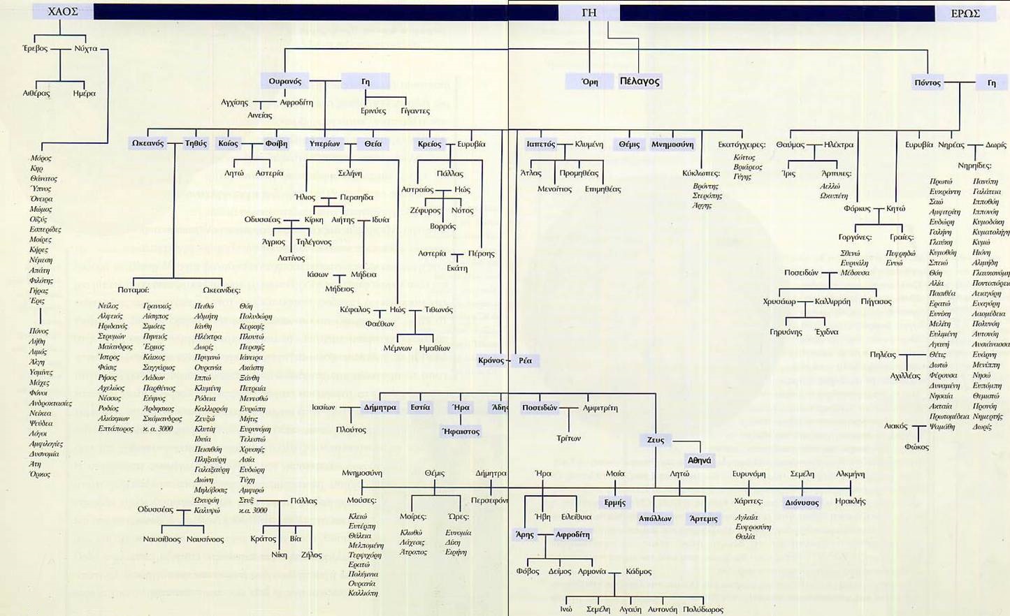 Ποια στοιχεία θα ορίζατε ως χωρικά και ποια ως χρονικά; Θα θεωρούσατε κάποια ως μεικτά; - Παρατηρήστε τους απογόνους της σκοτεινής Νύκτας και του Πόντου, καθώς και τους καρπούς της ένωσης του Ωκεανού και της Τηθύος. Μήπως διακρίνεται σε αυτούς κάποια «μυθολογική λογική»;