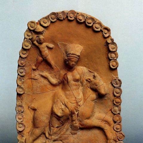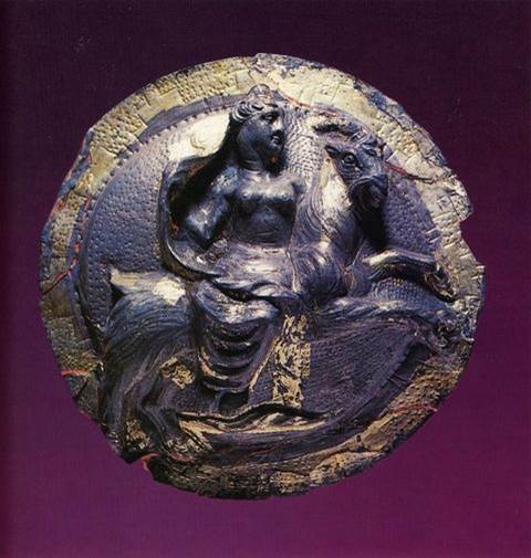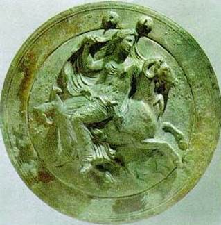 26 Πριν από την ύστερη κλασική εποχή, η Αφροδίτη κρατούσε το ζώο στην αγκαλιά της, στη συνέχεια εμφανιζόταν ανεβασμένη επάνω του.