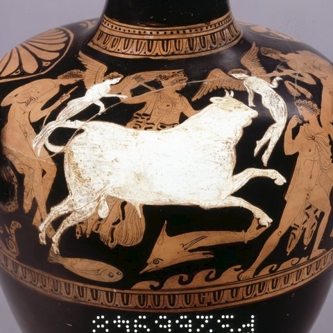α) Ο Κάδμος, διασχίζοντας τη Φωκίδα, είδε στα κοπάδια του Πελάγοντα, γιου του Αμφιδάμαντα, μια αγελάδα που ξεχώριζε, και στα δυο πλευρά της υπήρχε ένας άσπρος δίσκος που έμοιαζε με ολόγιομο φεγγάρι. Και θυμίζουμε ότι και στις θυσίες τα ζώα που επιλέγονταν να προσφερθούν στους θεούς ήταν αυτά που ξεχώριζαν, είτε γιατί ήταν νεογέννητα είτε γιατί ξεχώριζαν για κάποιον άλλον λόγο, ένα σημάδι ξεχωριστό στο δέρμα, όμορφο μαλλί κτλ., ποτέ δεν θυσιαζόταν το ασθενικό ή το μεγάλης ηλικίας και «άχρηστο» ζώο. Κυνήγησε το ζώο και εκεί που αυτό κουρασμένο έκατσε, ο Κάδμος ίδρυσε την πόλη των Θηβών και την ακρόπολή της Καδμεία, ενώ την περιοχή την ονόμασε Βοιωτία από την αγελάδα (βοῦς).
