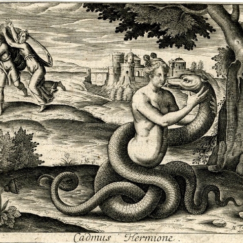 Κάδμος και Αρμονία άφησαν τον θρόνο στον εγγονό τους Πενθέα και μετοίκησαν στην Ιλλυρία. Σύμφωνα με χρησμό οι Εγχελείς ή Εγχέλιοι θα μπορούσαν να νικήσουν τους Ιλλυριούς που τους είχαν επιτεθεί αν είχαν οδηγούς τον Κάδμο και την Αρμονία. Ο Κάδμος βασίλεψε στην Ιλλυρία, εκεί απέκτησε ένα γιο, τον Ιλλυριό και εκεί έδειχναν τον τάφο τους. Ωστόσο, με τον θάνατό τους το ζευγάρι απέκτησε την αθανασία. Μεταμορφωμένοι σε φίδια οδηγήθηκαν από τον Δία στα Ηλύσια Πεδία. (Εικ. 33, 34, 35)
