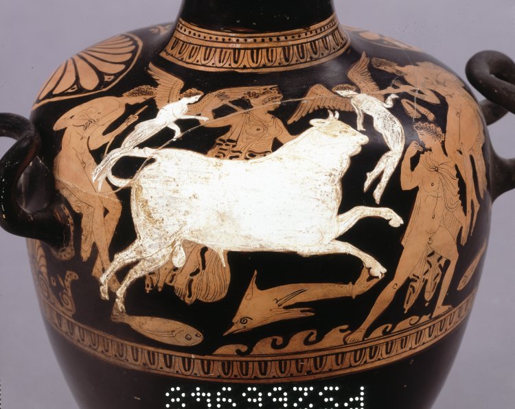Και όλοι οι θεοί άφησαν τον ουρανό και ευλόγησαν τον γάμο στην Καδμεία τρώγοντας και πίνοντας. Και ο Κάδμος της χάρισε πέπλο και περιδέραιο που το 'χε φτιάξει ο Ήφαιστος -κάποιοι λένε ότι ο Ήφαιστος το έδωσε στον Κάδμο, ο Φερεκύδης πάλι υποστηρίζει πως ήταν η Ευρώπη που κι αυτή το είχε πάρει από τον Δία. (Απολλόδωρος, 3.25-26)