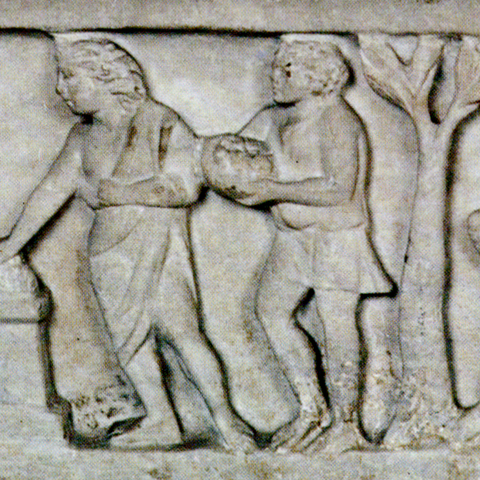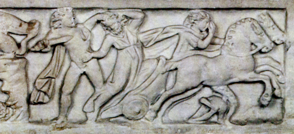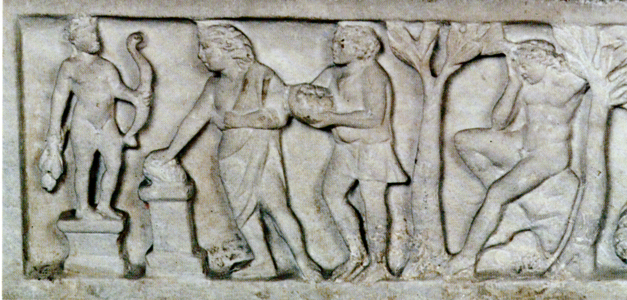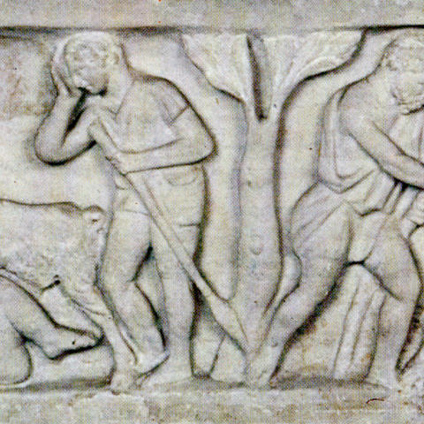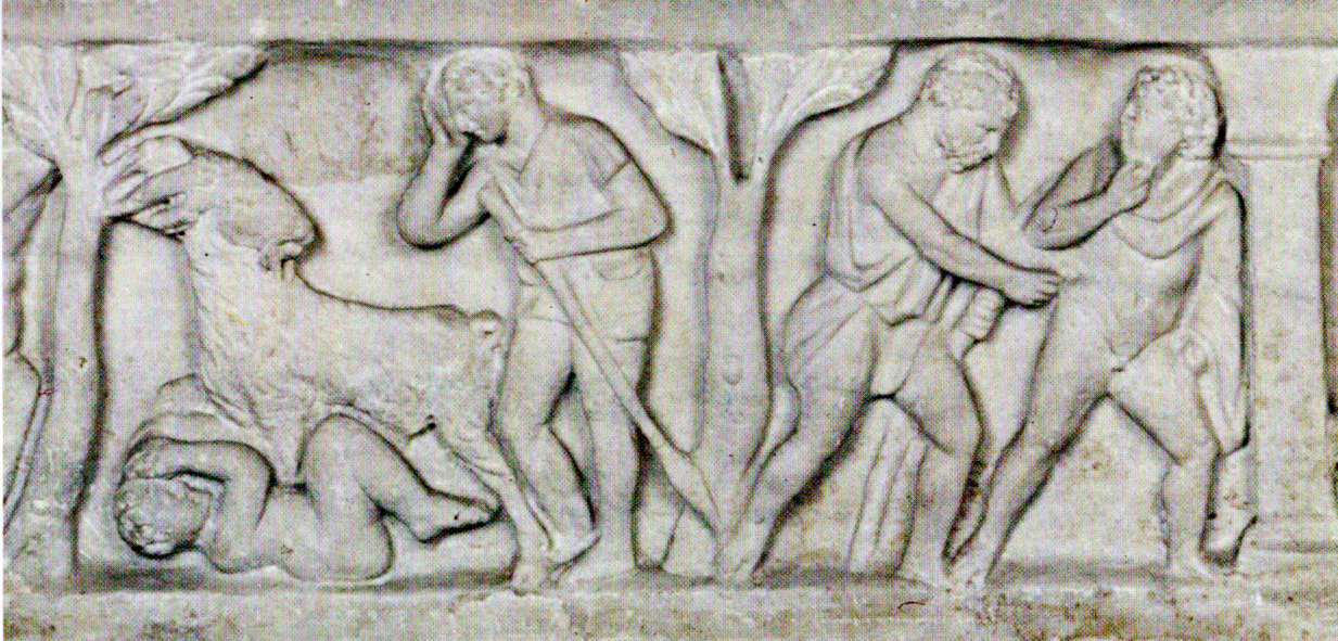 • Η ιστορία του Οιδίποδα. Κάλυμμα σαρκοφάγου, 3ος αι. μ.Χ., Ρώμη, Musei Vaticani, 10408 (2ο τμήμα)