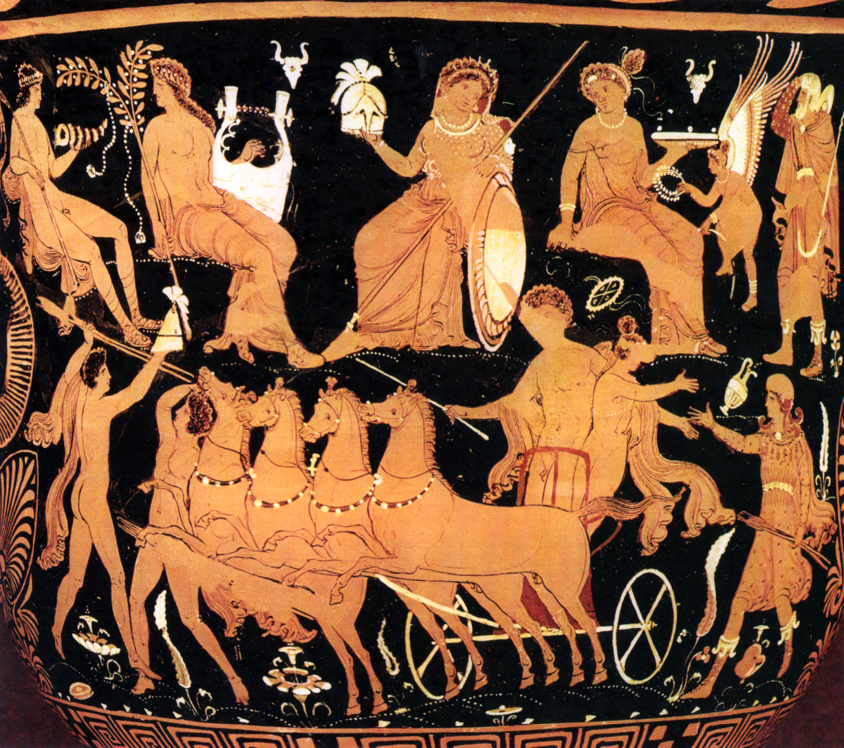 «[Ο Λάιος] παντρεύτηκε την κόρη του Μενοικέα, την οποία ορισμένοι αποκαλούν Ιοκάστη, άλλοι πάλι Επικάστη, και ενώ πήρε χρησμό από τον θεό να μην κάνει παιδιά με τη γυναίκα του (γιατί το παιδί που θα γεννιόταν θα γινόταν πατροκτόνος), αυτός πιωμένος κοιμήθηκε με τη γυναίκα του.[4] Και το παιδί που γεννήθηκε το έδωσε σε έναν από τους βοσκούς του, για να το εγκαταλείψει[5], αφού πρώτα του τρύπησε τους αστραγάλους με περόνες[6]. Και αυτός ο βοσκός άφησε, βέβαια, έκθετο το παιδί στον Κιθαιρώνα, το βρήκαν όμως οι αγελαδάρηδες του βασιλιά της Κορίνθου Πόλυβου και το έφεραν στη γυναίκα του, την Περίβοια. Και αυτή το πήρε και το φρόντισε σαν δικό της παιδί, θεράπευσε τους αστραγάλους του και το ονόμασε Οιδίποδα -του έδωσε το όνομα αυτό από το οίδημα των ποδιών του. Όταν ο νέος αντρώθηκε, επειδή διέφερε από τους συνομηλίκους του και προκαλούσε τον φθόνο τους, αυτοί τον έβριζαν αποκαλώντας τον νόθο. Και ενώ ρωτούσε την Περίβοια για να μάθει τον λόγο, αυτό στάθηκε αδύνατο· πήγε λοιπόν στους Δελφούς και ζητούσε να μάθει για τους γονείς του. Και ο θεός του απάντησε να μην επιστρέψει στην πατρίδα του· γιατί θα σκοτώσει τον πατέρα του και θα παντρευτεί τη μητέρα του. Μόλις τα άκουσε αυτά και επειδή πίστεψε για αληθινούς τους γονείς από τους οποίους λεγόταν ότι είχε γεννηθεί, άφησε την Κόρινθο και περνώντας με το άρμα του από τα εδάφη της Φωκίδας συνάντησε σε δρόμο στενό τον Λάιο που κι αυτός επέβαινε σε άρμα. Και καθώς ο Πολυφόντης (ήταν ο κήρυκας του Λαΐου) τον διέταξε να παραμερίσει, του σκότωσε μάλιστα και το ένα από τα δυο του άλογα, επειδή εκείνος δεν πειθάρχησε και καθυστερούσε, οργισμένος ο Οιδίποδας σκότωσε και τον Πολυφόντη και τον Λάιο και τράβηξε για τη Θήβα.[7] Τον Λάιο λοιπόν τον έθαψε ο βασιλιάς των Πλαταιών Δαμασίστρατος, ενώ τη βασιλεία ανέλαβε ο Κρέοντας, ο γιος του Μενοικέα.» (Απολλόδωρος 3.48-52) (Εικ. 38, 39, 40, 41, 42, 43, 44, 45, 46, 47, 48, 49, 50, 51, 52)