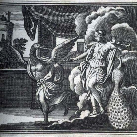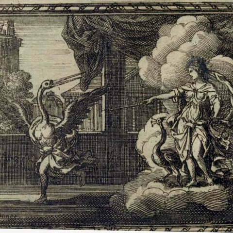 Αντιγόνη ονομαζόταν μια αδελφή του Πρίαμου, κόρη σπάνιας ομορφιάς αλλά και με την αλαζονεία να τη διακρίνει ειδικά για τα μαλλιά της που τα παίνευε σαν ωραιότερα και από της Ήρας ακόμη. Θυμωμένη η Ήρα τιμώρησε την κόρη μετατρέποντας τα μαλλιά της σε φίδια, όμως οι θεοί τη λυπήθηκαν και τη μεταμόρφωσαν σε πουλί εχθρό των φιδιών, σε πελαργό. (Εικ. 390, 391, 392)