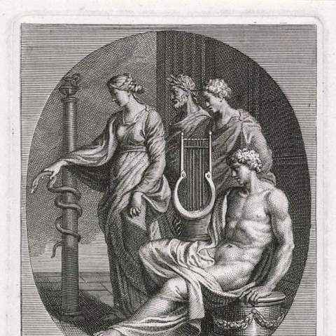 ο οποίος τον ανέθρεψε και του δίδαξε την ιατρική και την τέχνη του κυνηγού. Έγινε μάλιστα χειρουργός και ασκώντας την τέχνη του για πολύ καιρό όχι μόνο εμπόδιζε κάποιους να πεθάνουν αλλά ανάσταινε και τους νεκρούς· γιατί πήρε από την Αθηνά το αίμα που έτρεξε από τις φλέβες της Γοργόνας, και το αίμα που είχε χυθεί από τα αριστερά το χρησιμοποιούσε για την καταστροφή των ανθρώπων [ήταν δηλητήριο], ενώ αυτό που είχε τρέξει από τις δεξιές φλέβες για τη σωτηρία τους [ήταν ευεργετικό], και με αυτό ανάσταινε τους νεκρούς. (Απολλόδωρος 3.10.3) (Εικ. 597, 598, 599, 600)