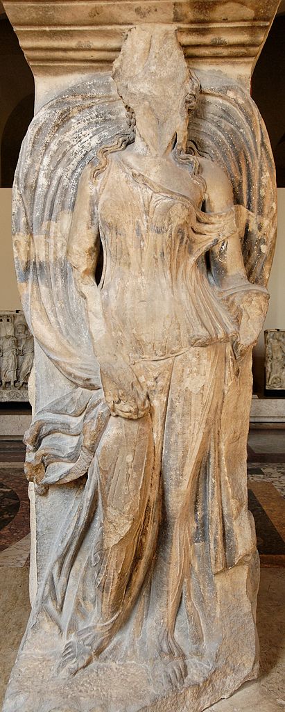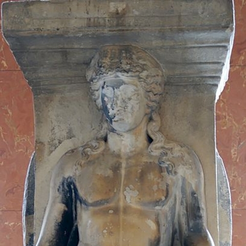 Η Αύρα κοσμεί τη μια πλευρά ενός από τους αμφίπλευρους ανάγλυφους πεσσούς στη λεγόμενη στοά των Ειδώλων ή των Μαγεμένων (ή των Incantadas, στη σεφαραδίτικη γλώσσα) στη Θεσσαλονίκη (2ος αι. μ.Χ.). (Εικ. 720, 721, 722, 723)