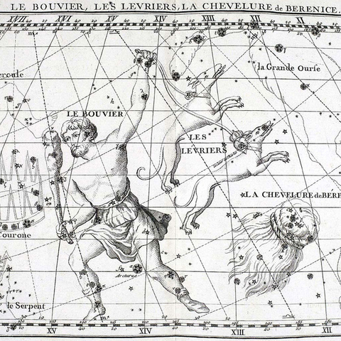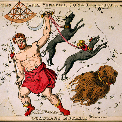 Λίγο μετά το γάμο τους, ο Πτολεμαίος άφησε τη γυναίκα του -στο νυφικό κρεβάτι λέει ο Καλλίμαχος- και έφυγε από την Αίγυπτο για να υποστηρίξει την αδερφή του, Βερενίκη κι αυτή, στον τρίτο συριακό πόλεμο. Και εδώ αρχίζει ο θρύλος. Ακολουθώντας παλιές συνήθειες, η Βερενίκη υποσχέθηκε να αφιερώσει μια μπούκλα από τα πλούσια και όμορφα μαλλιά της στον ναό της θεάς Αρσινόης Αφροδίτης στο Ζεφύριο (ακρωτήριο στην Κάτω Αίγυπτο), αν ο άνδρας της επέστρεφε σώος και αβλαβής από τον πόλεμο. Όταν εκείνος επέστρεψε, η Βερενίκη εκπλήρωσε το τάμα της, όμως την επομένη ο πλόκαμος χάθηκε. Και ο Κόνων από τη Σάμο, μαθηματικός, αστρονόμος και αστρολόγος στην αυλή του φαραώ, εξαργυρώνοντας πολιτικά για λογαριασμό της βασιλικής οικογένειας το «συμβάν» είπε πως η μπούκλα χάθηκε μυστηριωδώς και εμφανίστηκε ως αστερισμός στον ουρανό. Ο αστερισμός ονομάστηκε Κόμη ή Πλόκαμος της Βερενίκης (Στρ.1.1.6). Και ο Καλλίμαχος (310-240 π.Χ.) έγραψε ένα, χαμένο σήμερα, ποίημα για τον βόστρυχο αυτό, περιγραφή του οποίου διασώζει ο Κάτουλος (87-47 π.Χ.) που μιμούνταν τον Καλλίμαχο. Θα πρέπει, βέβαια, να σημειώσουμε ότι ο Άρατος (305-240 π.Χ.), και αυτός μαθηματικός, αστρονόμος και ποιητής, περιγράφει τα αστέρια στην ουρά του Λέοντος, όμως δεν δίνει κανένα όνομα. Ο Ερατοσθένης εντάσσει τον πλόκαμο στον αστερισμό του Λέοντα. Βάσιμα εικάζουμε ότι η ιστορία για την Κόμη της Βερενίκης είναι ένα πολιτικό μύθευμα. (Εικ. 759, 760, 761, 762, 763, 764, 765, 766, 767)