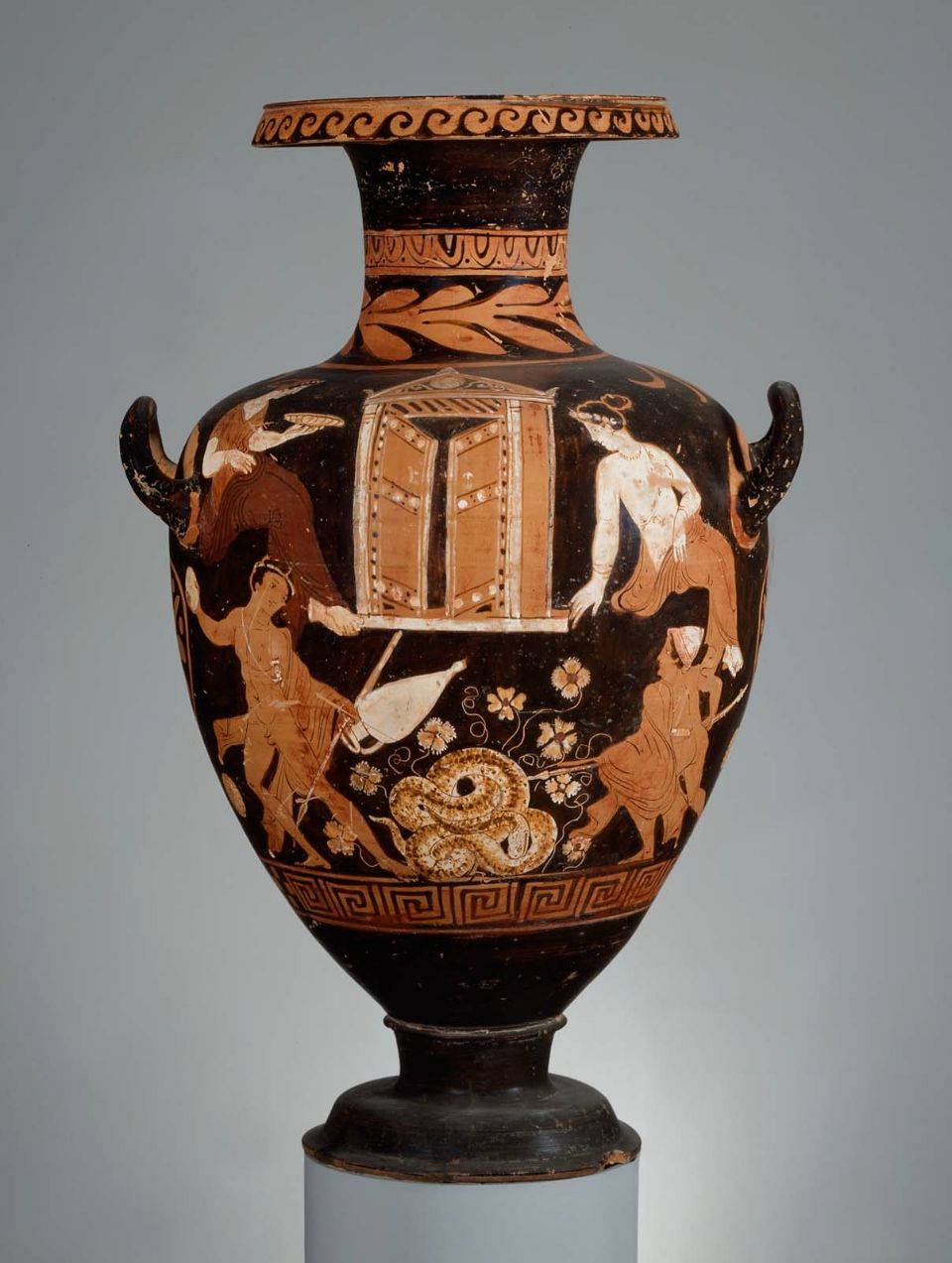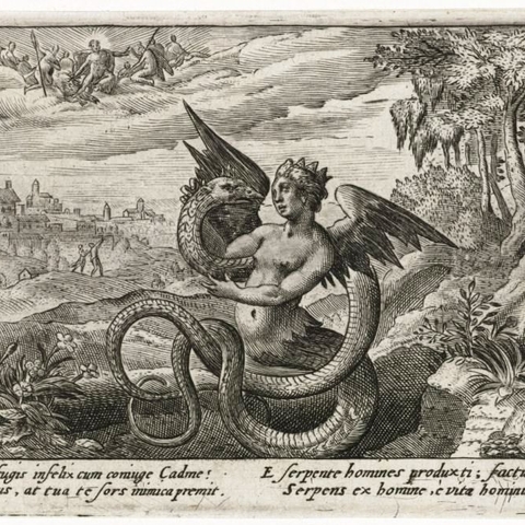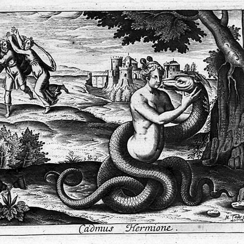 Και όλοι οι θεοί άφησαν τον ουρανό και ευλόγησαν τον γάμο στην Καδμεία τρώγοντας και πίνοντας. Και ο Κάδμος της χάρισε πέπλο και περιδέραιο που το 'χε φτιάξει ο Ήφαιστος -κάποιοι λένε ότι ο Ήφαιστος το έδωσε στον Κάδμο· ο Φερεκύδης πάλι υποστηρίζει πως ήταν η Ευρώπη που κι αυτή το είχε πάρει από τον Δία. (Απολλόδωρος, 3.25-26)