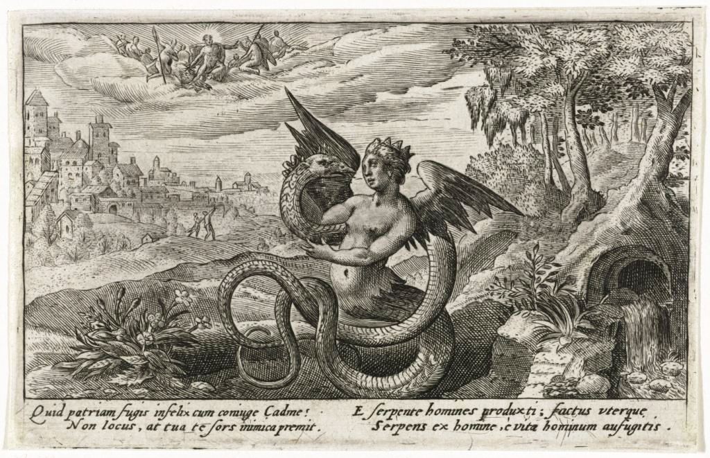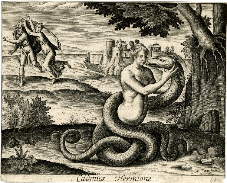 Κάδμος και Αρμονία άφησαν τον θρόνο στον εγγονό τους Πενθέα και μετοίκησαν στην Ιλλυρία. Σύμφωνα με χρησμό οι Εγχελείς ή Εγχέλιοι θα μπορούσαν να νικήσουν τους Ιλλυριούς που τους είχαν επιτεθεί αν είχαν οδηγούς τον Κάδμο και την Αρμονία. Ο Κάδμος βασίλεψε στην Ιλλυρία, εκεί απέκτησε ένα γιο, τον Ιλλυριό και εκεί έδειχναν τον τάφο τους. Ωστόσο, με τον θάνατό τους το ζευγάρι απέκτησε την αθανασία. Μεταμορφωμένοι σε φίδια οδηγήθηκαν από τον Δία στα Ηλύσια Πεδία. (Εικ. 1229, 1230, 1231, 1232, 1233, 1234, 1235)