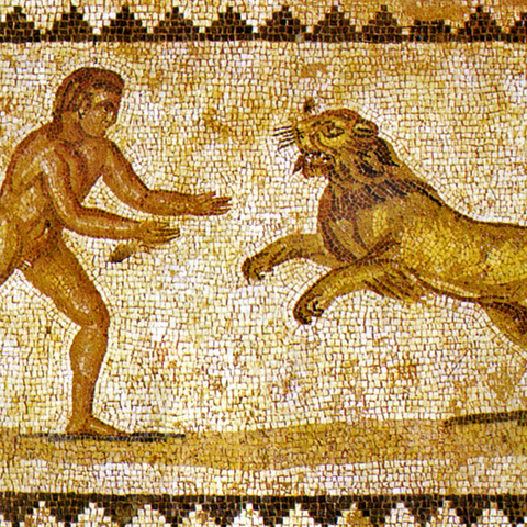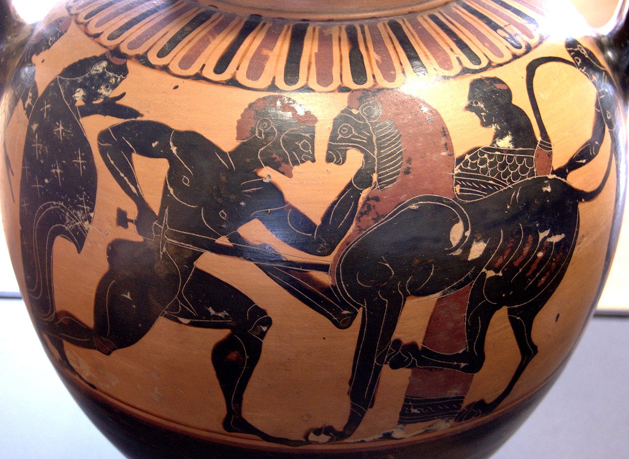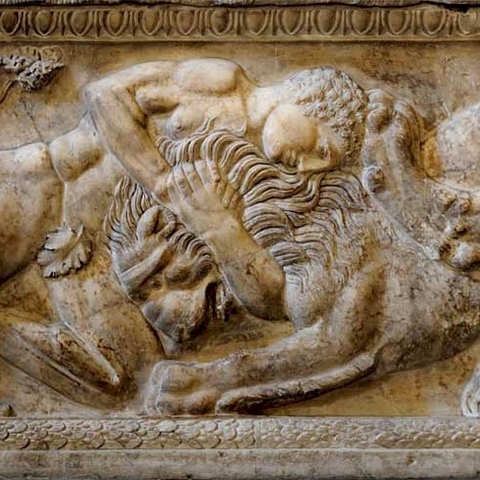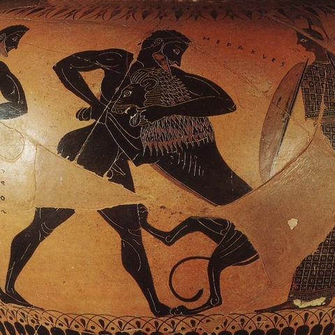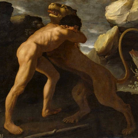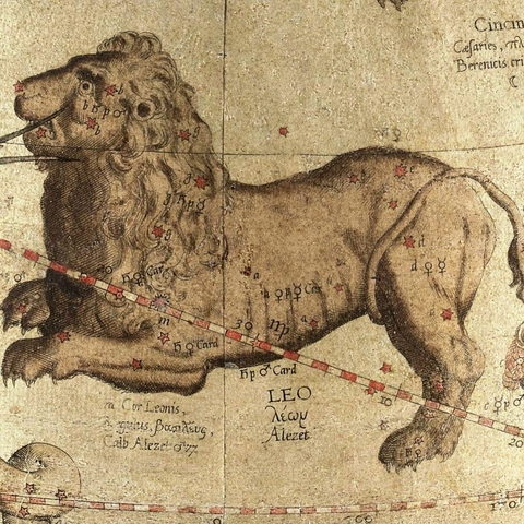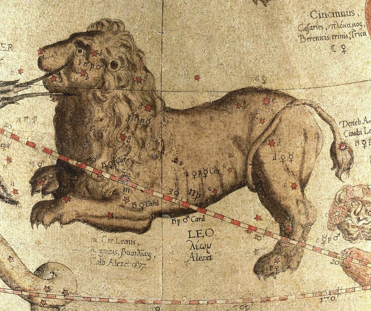 Πρόκειται για το λιοντάρι της Νεμέας που ο Ηρακλής κατάφερε να καθυποτάξει και να σκοτώσει. Οι θεοί θέλοντας να τιμήσουν τον ήρωα και να θυμίζουν αιώνια στους ανθρώπους την ευγνωμοσύνη που του οφείλουν ανέβασαν τον Λέοντα στον ουρανό κάνοντάς τον αστερισμό. Παραθέτουμε την αφήγηση του Απολλοδώρου (2.5.1) για τον πρώτο άθλο του Ηρακλή παρεμβάλλοντας πληροφορίες και από άλλους συγγραφείς: Αυτός [ο Ευρυσθέας] λοιπόν στην αρχή τον διέταξε να του φέρει τη δορά από το λιοντάρι της Νεμέας· επρόκειτο για ζώο άτρωτο, που είχε γεννηθεί από τον Τυφώνα. Άλλοτε, πάλι, λέγεται γιος του Όρθρου και της Έχιδνας, αδελφός της Σφίγγας των Δελφών. Το ανέθρεψε η Ήρα (ή η Σελήνη που το παραχώρησε στην Ήρα) και το άφησε ελεύθερο στα δάση της Νεμέας, όπου προξενούσε μεγάλες καταστροφές σε κοπάδια και ανθρώπους, με αποτέλεσμα η όλη η περιοχή να ερημώνει εξαιτίας του. Πηγαίνοντας λοιπόν για το λιοντάρι [ο Ηρακλής], ήλθε στις Κλεωνές (πάνω στον δρόμο από το Άργος για την Κόρινθο), και εκεί φιλοξενήθηκε από τον Μόλορχο, ένα φτωχό χειρώνακτα. Και καθώς εκείνος ετοιμαζόταν να θυσιάσει ένα σφάγιο, το μοναδικό κριάρι και το μοναδικό αγαθό που είχε, ο Ηρακλής του είπε να το φυλάξει για τριάντα μέρες, και αν επιστρέψει σώος, να το θυσιάσει στον Δία σωτήρα, αν όμως πεθάνει, να το προσφέρει[31]σε αυτόν τιμώντας τον σαν νεκρό ήρωα. Όταν έφτασε στη Νεμέα, αναζήτησε το λιοντάρι· πρώτα το χτύπησε με τα βέλη του, όταν όμως κατάλαβε ότι ήταν άτρωτο, σήκωσε το ρόπαλο και το κυνήγησε. Κυνηγημένο από τον Ηρακλή, κατέφυγε σε σπηλιά που είχε δύο ανοίγματα· τότε εκείνος έχτισε τη μία είσοδο, μπήκε από την άλλη και επιτέθηκε στο θηρίο, έβαλε το χέρι του γύρω από τον λαιμό του και το έσφιξε μέχρι που το έπνιξε· ύστερα, το φόρτωσε στους ώμους του και το έφερε στις Κλεωνές, φορώντας το δέρμα του ζώου. Εκεί βρήκε τον Μόλορχο να ετοιμάζεται την τελευταία μέρα να θυσιάσει το σφάγιο προς τιμή του, νομίζοντάς τον πια για νεκρό, θυσίασε στον Δία σωτήρα και στη συνέχεια μετέφερε το λιοντάρι στις Μυκήνες. Έκπληκτος ο Ευρυσθέας από την τόλμη του, του απαγόρευσε στο εξής να μπαίνει μέσα στην πόλη και του έδωσε την εντολή να επιδεικνύει τα αποτελέσματα των άθλων του μπροστά από τις πύλες. Λένε μάλιστα ότι φοβήθηκε τόσο που κατασκεύασε για τον εαυτό του ένα χάλκινο πιθάρι, που το έχωσε κάτω από το γη, και ότι του παράγγελνε τους άθλους στέλνοντάς του για κήρυκα τον Κοπρέα, γιο του Πέλοπα από την Ηλεία.