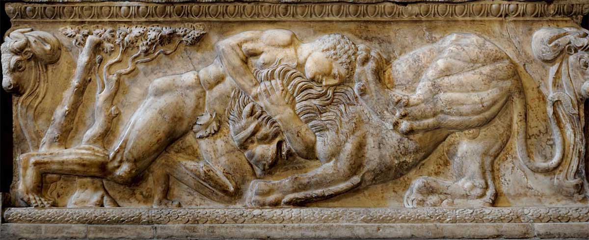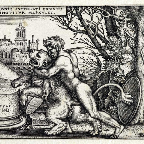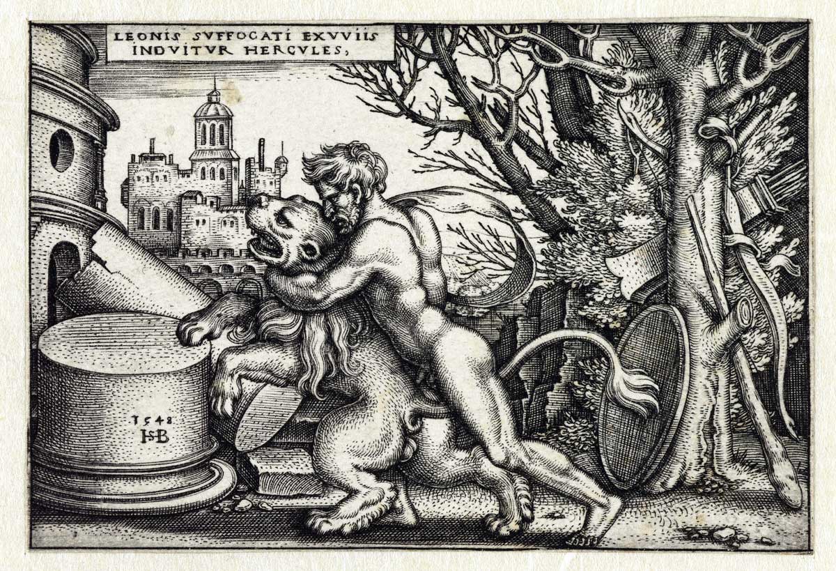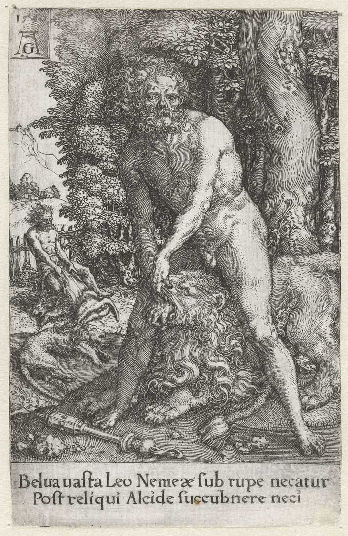 Μετά τη μονομαχία, ο Ηρακλής έγδαρε το λιοντάρι και φόρεσε το δέρμα του, ενώ το κεφάλι τού χρησίμευσε για περικεφαλαία. Κατά άλλους συγγραφείς, αυτό δεν έγινε εύκολα. Ο Θεόκριτος διηγείται την αμηχανία του ήρωα μπροστά σε αυτό το δέρμα που, άτρωτο σε φωτιά και σίδερο, ήταν αδύνατο να το αφαιρέσει από το σώμα του ζώου. Μέχρι που σκέφτηκε να χρησιμοποιήσει σαν εργαλείο τα νύχια του ίδιου του ζώου. (Εικ. 1347, 1348, 1349, 1350, 1351, 1352, 1353, 1354, 1355, 1356, 1357, 1358, 1359, 1360, 1361, 1362, 1363)
