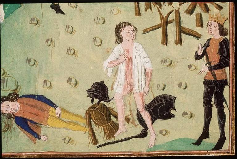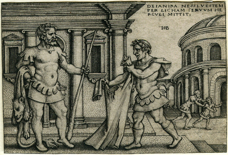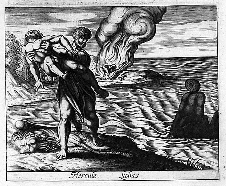 […] θέλοντας [ο Ηρακλής] να τελέσει θυσία, έστειλε τον Λίχα τον υπηρέτη του, στην Τραχίνα, στη γυναίκα του Δηιάνειρα, με την εντολή να της ζητήσει το ιμάτιο και τον χιτώνα, που συνήθιζε να φοράει κατά τις θυσίες. Η Δηιάνειρα, όταν έμαθε από τον Λίχα την αγάπη του Ηρακλή προς την Ιόλη, επειδή ήθελε να αγαπάει περισσότερο αυτήν, άλειψε τον χιτώνα με το φίλτρο που της είχε δώσει ο Κένταυρος για την εξόντωσή του. Ο Λίχας, αγνοώντας την κατάσταση, έφερε τα ρούχα για τη θυσία. Και ο Ηρακλής ντύθηκε τον αλειμμένο χιτώνα και σιγά σιγά, καθώς επενεργούσε η δύναμη του δηλητηρίου, έπεσε στη φοβερότερη συμφορά. Γιατί η αιχμή του βέλους έφερε πάνω της το δηλητήριο της ύδρας [της Λερναίας Ύδρας] και όπως ο χιτώνας άρχισε με τη θερμότητα του σώματος να διαβρώνει τις σάρκες, ο Ηρακλής πάνω στον πόνο του σκότωσε τον Λίχα τον υπηρέτη του […] (Διόδ. 4.38)