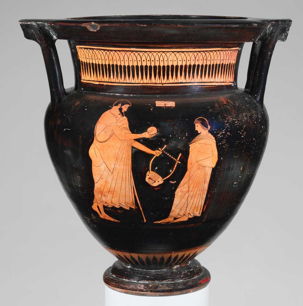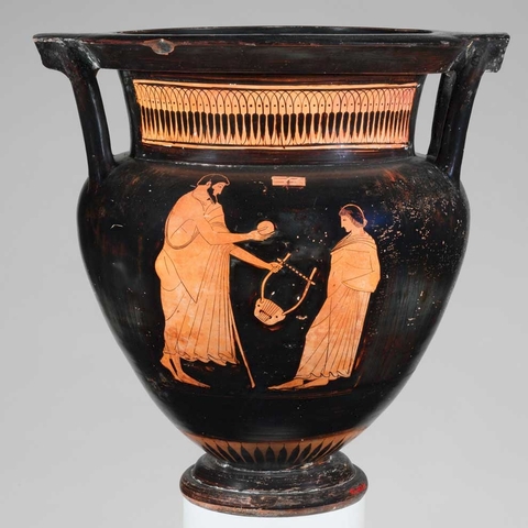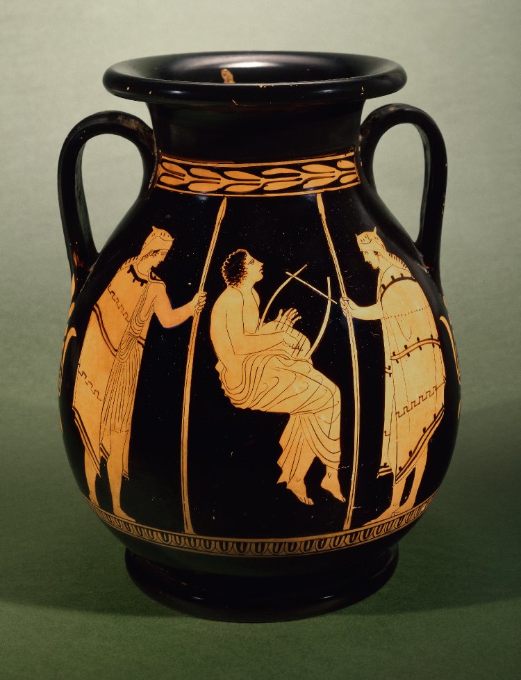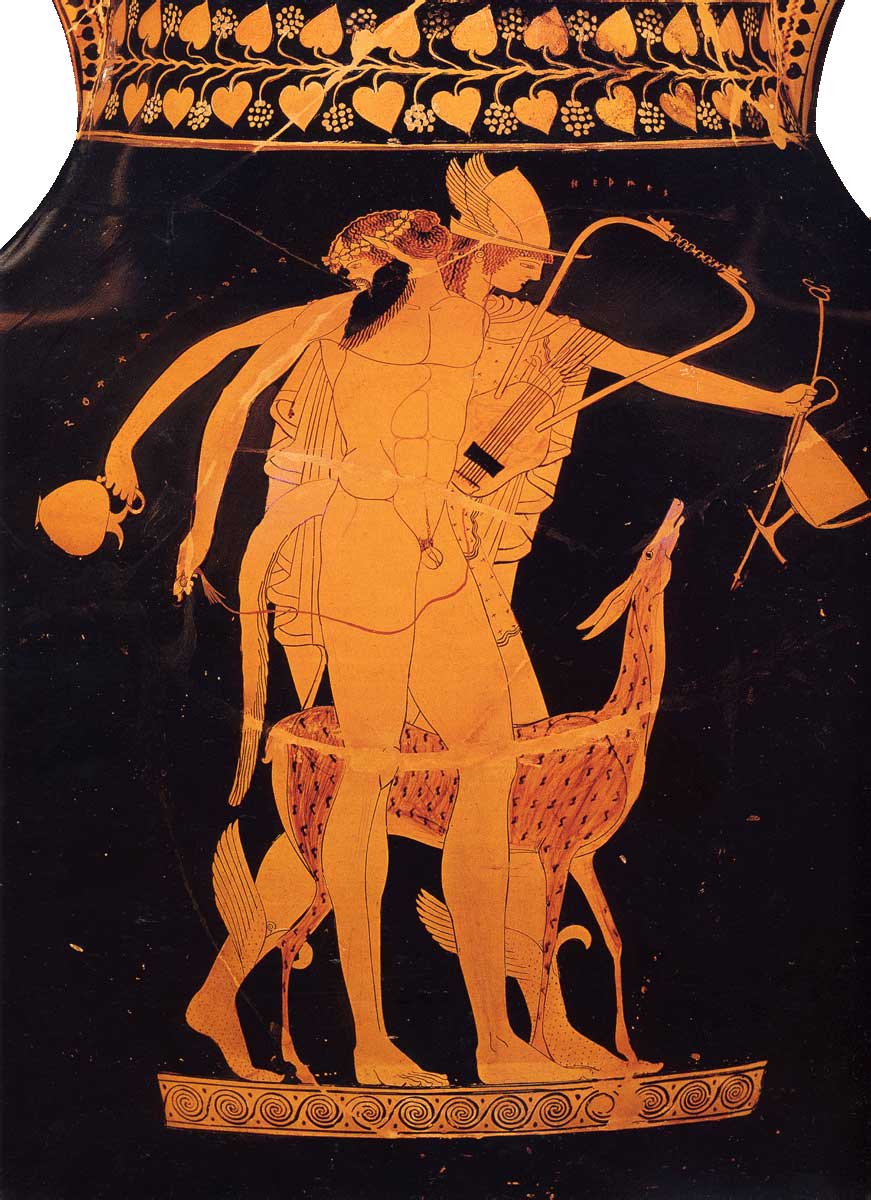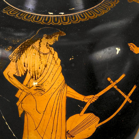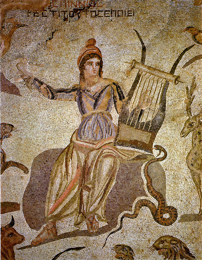 Ο θεός Ερμής δημιούργησε τη λύρα από μεγάλο όστρακο χελώνας, το οποίο κάλυψε με δέρμα ζώου από τα κοπάδια του Απόλλωνα και κέρατα αντιλόπης. Προσάρμοσε επτά χορδές από τον αριθμό των θυγατέρων του Άτλαντα, ενώ ο Ορφέας, στα χέρια του οποίου πέρασε από τον Απόλλωνα, τις αύξησε σε εννέα από τον αριθμό των Μουσών -ο Ορφέας ήταν γιος μιας Μούσας, της Καλλιόπης. Με αυτή τη λύρα και τη μουσική του απέκτησε τη φήμη ότι υπέτασσε δέντρα, ζώα και πέτρες. (Εικ. 1385, 1386, 1387, 1388, 1389, 1390, 1391, 1392, 1393, 1394, 1395, 1396, 1397, 1398, 1399, 1400, 1401, 1402, 1403) Από τους θεούς τιμούσε μόνο τον Ήλιο, που τον αποκαλούσε και Απόλλωνα, και χαράματα ανέβαινε στο Παγγαίο για να δει τον ήλιο να βγαίνει. Προκάλεσε την οργή του Διόνυσου, γιατί δεν τον τιμούσε, και εκείνος έστειλε τις Βασσαρίδες[34] που τον διαμέλισαν και πέταξαν τα μέλη του χωριστά το ένα από το άλλο. Οι Μούσες τα περιμάζεψαν και τον έθαψαν στα Λείβηθρα. Και επειδή δεν είχαν πού να δώσουν τη λύρα, ζήτησαν από τον Δία να την τοποθετήσει ανάμεσα στα αστέρια σε ανάμνηση δική τους και του Ορφέα. Ο αστερισμός της λύρας αποτελείται από εβδομήντα τρία άστρα. (Ερατοσθένης, Καταστερισμοί 1.24R[12].2) (Εικ. 871, 872, 873, 874)