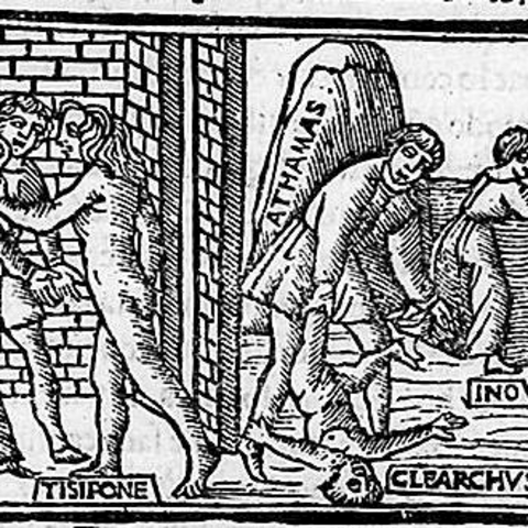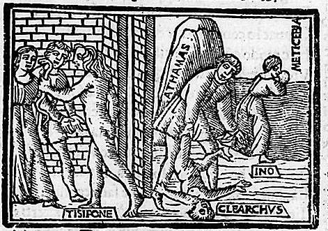 • Η Ερινύα Τισιφόνη, σταλμένη από την Ήρα, ραίνει με δηλητήριο την Ινώ και τον Αθάμαντα.