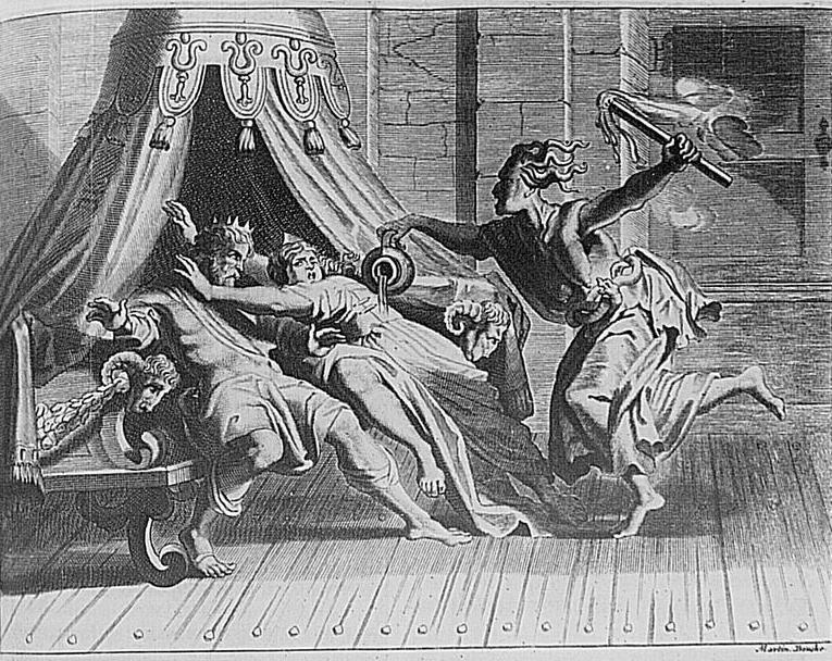 • Η Τισιφόνη ρίχνει φίδια στον Αθάμαντα και την Ινώ.