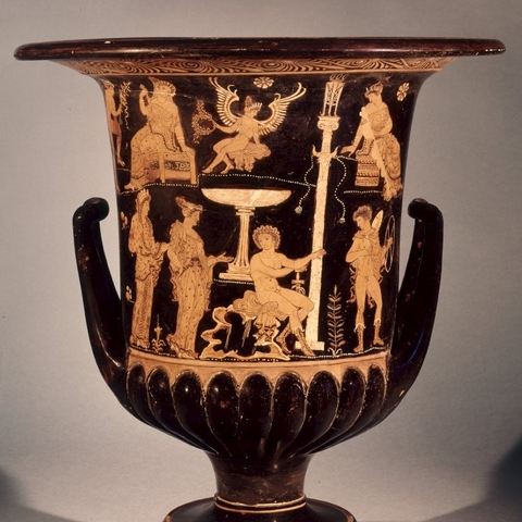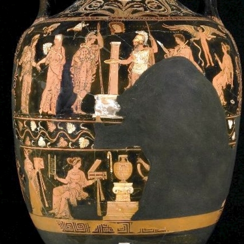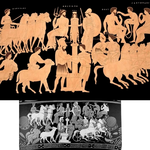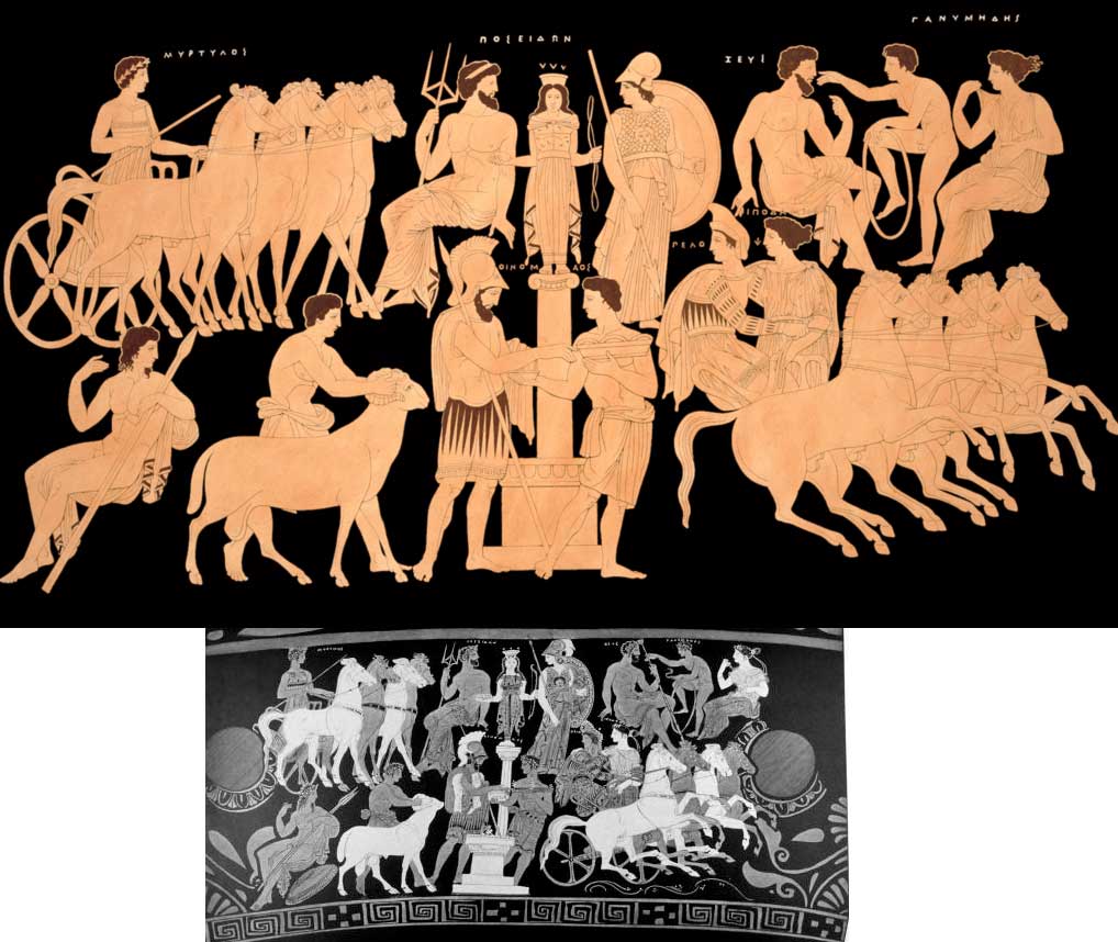 Πέφτοντας ο Μυρτίλος πρόλαβε και καταράστηκε τον Πέλοπα και τους απογόνους του. Και αν και ο Πέλοπας έκτισε ναό προς τιμή του Ερμή προκειμένου να αποφύγει την οργή του θεού από τον φόνο του γιου του, ωστόσο λέγεται ότι εδώ, σε αυτή την κατάρα, βρίσκεται η απαρχή των δεινών της γενιάς του, ιδίως στους Ατρείδες. (Εικ. 1471, 1472, 1473, 1474, 1475, 1476, 1477)