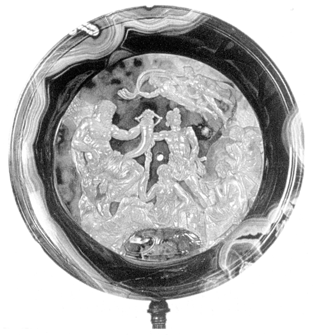 Σε πιάτο της αλεξανδρινής σχολής (2ος αι. μ.Χ.), προσωποποιημένος ο ποταμός Νείλος κρατά το κέρας της Αμαλθείας. Κάτω η σφίγγα του Οσίριδος και πάνω σε αυτήν η Ίσις, με τα χαρακτηριστικά του Πτολεμαίου Ε' και της συζύγου του Κλεοπάτρας αντίστοιχα. Στο κέντρο ο Ώρος-Τριπτόλεμος, με τα χαρακτηριστικά του διαδόχου Πτολεμαίου ΣΤ', δεξιά δύο προσωποποιήσεις εποχών -των πλημμυρών και του θερισμού, επάνω οι ετήσιοι άνεμοι. Η απεικόνιση αυτή μπορεί να μεταδίδει ή και να αποτυπώνει το πολιτικό μήνυμα της ευμάρειας, μέσα από την ορθολογική διευθέτηση των υδάτων με δεδομένες τις συγκεκριμένες κλιματολογικές συνθήκες, κάτω από την ηγεσία της βασιλικής οικογένειας. Εξάλλου, σύμφωνα με μια ευημεριστική / ορθολογική / ιστορική παραλλαγή ο Νείλος ονομάστηκε έτσι από τον βασιλιά Νειλέα της Αιγύπτου που είχε κάνει εύφορη την Αίγυπτο κατασκευάζοντας τεχνικά έργα (κανάλια, φράγματα κτλ.). Προς τιμή του, και αναγνωρίζοντας την προσφορά του, ο λαός μετονόμασε τον ποταμό σε Νείλο από Αίγυπτο ή Αετό ή Ωκεάνη που λεγόταν παλιά (Διόδ. Σ. 1.19). Αυτός ο ποταμός σύμφωνα με τον Ερατοσθένη είναι ο αστερισμός του Ποταμού, ενώ κατά τον Άρατο ο αστερισμός αυτός είναι του Ηριδανού. (Εικ. 988, 989, 990, 991)