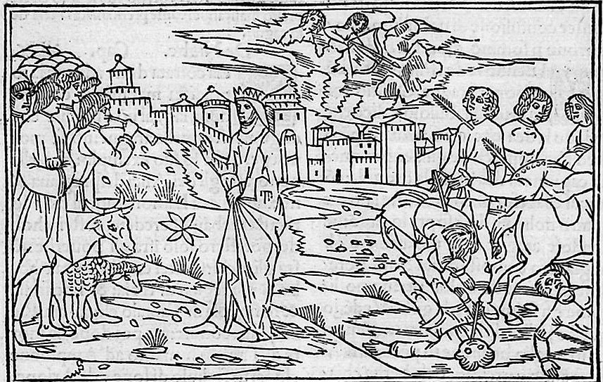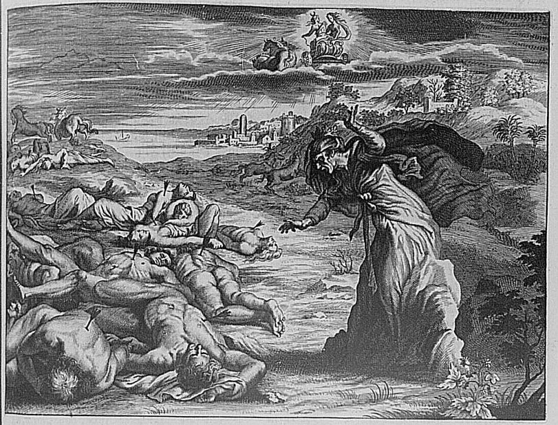 40 Πρβ. τον λιμό που έστειλε στο αχαϊκό στρατόπεδο εξαιτίας της άρνησης του Αγαμέμνονα να παραδώσει τη Χρυσηίδα στον πατέρα της. Ή τον λιμό που έστειλε στη Θήβα, επειδή οι Θηβαίοι δεν είχαν φροντίσει να διαλευκάνουν τον φόνο του βασιλιά τους Λάιου.