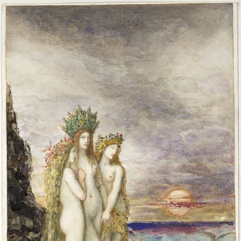 Το νησί των Σειρήνων τοποθετείται κατά μήκος της ακτής της Ν. Ιταλίας στα ανοιχτά της χερσονήσου του Σορέντο, από όπου με το πανέμορφο τραγούδι τους προσείλκυαν τους ναύτες των πλοίων που πλησίαζαν στην περιοχή τους και προκαλούσαν στη συνέχεια την καταστροφή τους. Ως εκ τούτου οι Σειρήνες συνδέθηκαν με τον θάνατο, θεωρήθηκαν θεότητες του υπερπέραν που τραγουδούσαν για όσους κατοικούσαν μακάρια στα νησιά των Ηλυσίων, και γι' αυτό εικονίζονται στα ταφικά μνημεία.