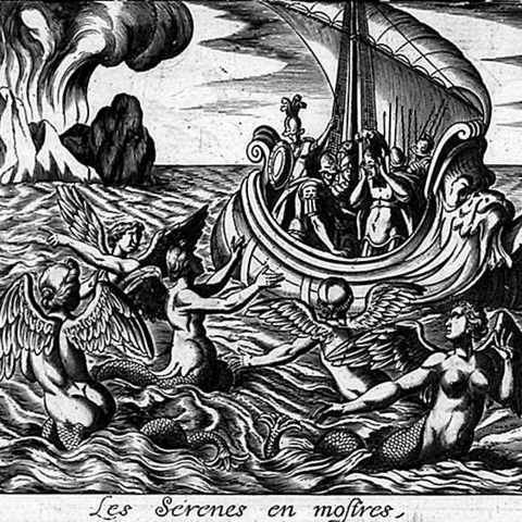 Στην Οδύσσεια, όταν η Κίρκη δίνει οδηγίες στον Οδυσσέα ποιο δρόμο να πάρει φεύγοντας από το νησί της, ώστε να προφυλαχτεί και να προφυλάξει τους συντρόφους του από τους κινδύνους της θάλασσας, αναφέρεται και στις Σειρήνες, στα δεινά που προκαλούν στους ναυτικούς με το τραγούδι τους και στο πώς εκείνοι θα μπορέσουν να γλυτώσουν: