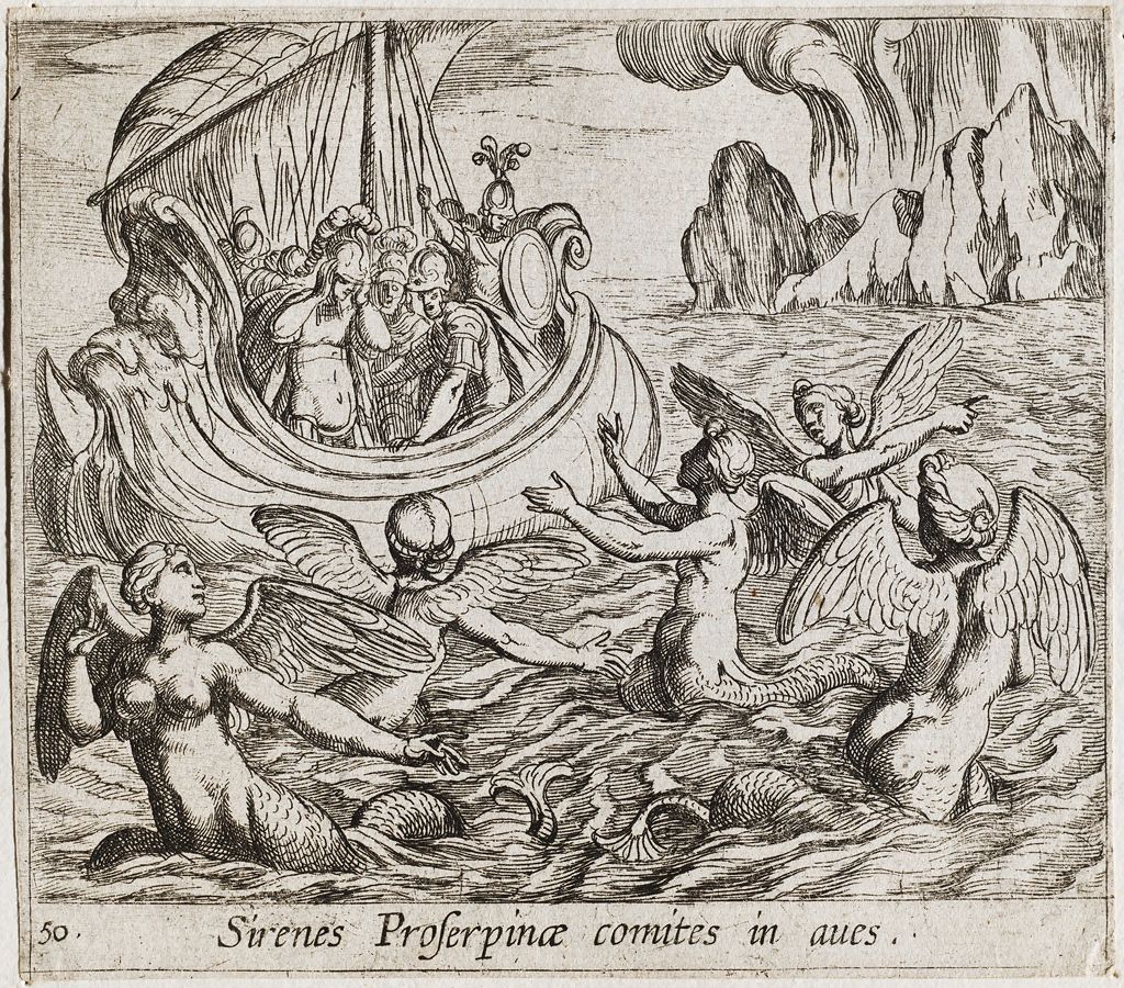 Ήδη από την αρχαιότητα οι μυθογράφοι προσπάθησαν να εξηγήσουν τη διττή φύση των Σειρήνων. Σύμφωνα με τον Οβίδιο ήταν κοπέλες, συνοδοί της Περσεφόνης. Όταν την απήγαγε ο Άδης, ζήτησαν από τους θεούς να τις δώσουν φτερά, για να αναζητήσουν την κόρη σε στεριά και θάλασσα. Κατά άλλους, η μερική μεταμόρφωσή τους οφείλεται στην οργή της Δήμητρας, γιατί δεν βοήθησαν την κόρη της τη στιγμή της αρπαγής (Εικ. 1705).