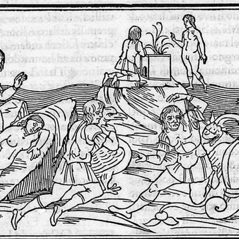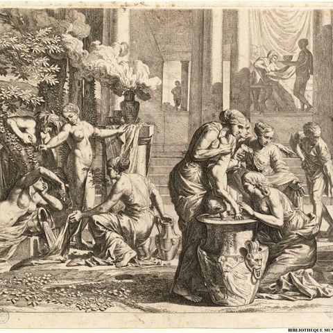 2. Συμβούλευσε τον Πηλέα τι να κάνει, για να πιάσει τη Θέτιδα που διαρκώς μεταμορφωνόταν, άλλοτε σε φωτιά, άλλοτε σε νερό, άλλοτε σε αγρίμι· να την πιάσει και να την κρατήσει μέχρι να πάρει την αρχική της μορφή. (Εικ. 1961, 1962, 1963)