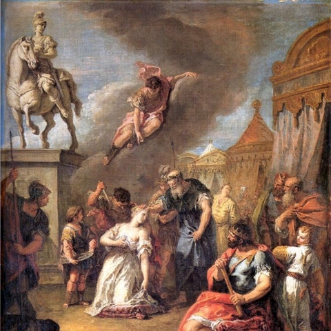Άλλη εκδοχή, της ελληνιστικής περιόδου, θέλει την Πολυξένη να συνοδεύει τον πατέρα της Πρίαμο, μαζί με την Ανδρομάχη, στη σκηνή του Αχιλλέα, για να ζητήσουν το πτώμα του Έκτορα και να το θάψουν με τις πρέπουσες τιμές. Αδιάφορος ο Αχιλλέας στις παρακλήσεις της χήρας και του πατέρα, γοητευμένος όμως από τη νέα που προσφέρθηκε να γίνει σκλάβα πλάι του, δέχτηκε να παραδώσει το νεκρό και ά-τιμο σώμα. Μάλιστα, μυθολογείται κάποιες φορές ότι ο Αχιλλέας ήταν έτοιμος να προβεί σε συμφωνία με τον Πρίαμο, να προδώσει το αχαϊκό στρατόπεδο και να επιστρέψει στην πατρίδα του ή να πολεμήσει μαζί τους εναντίον των Ελλήνων, προκειμένου να πάρει την Πολυξένη για γυναίκα του. Η συμφωνία θα επικυρωνόταν στον ναό του Θυμβραίου Απόλλωνα, όμως ο Πάρης (ή ο Δηίφοβος), κρυμμένος πίσω από το άγαλμα του θεού, σκότωσε τον γαμπροστολισμένο και άοπλο Αχιλλέα με βέλος ή με μαχαίρι. (Σχόλια στον Ευρ. Εκάβη 41 και 388 και Τρωάδες 16) (Εικ. 107)