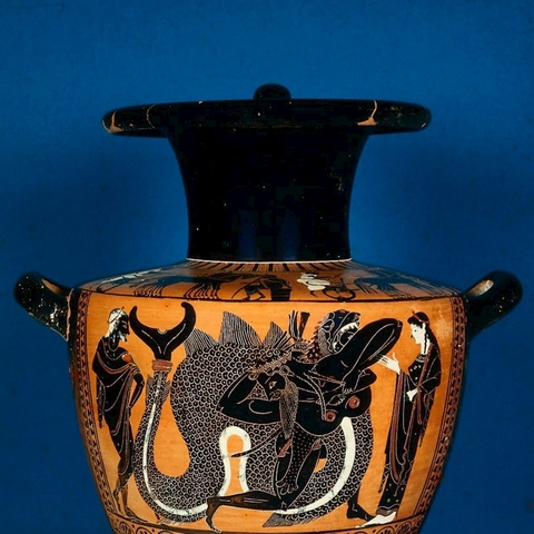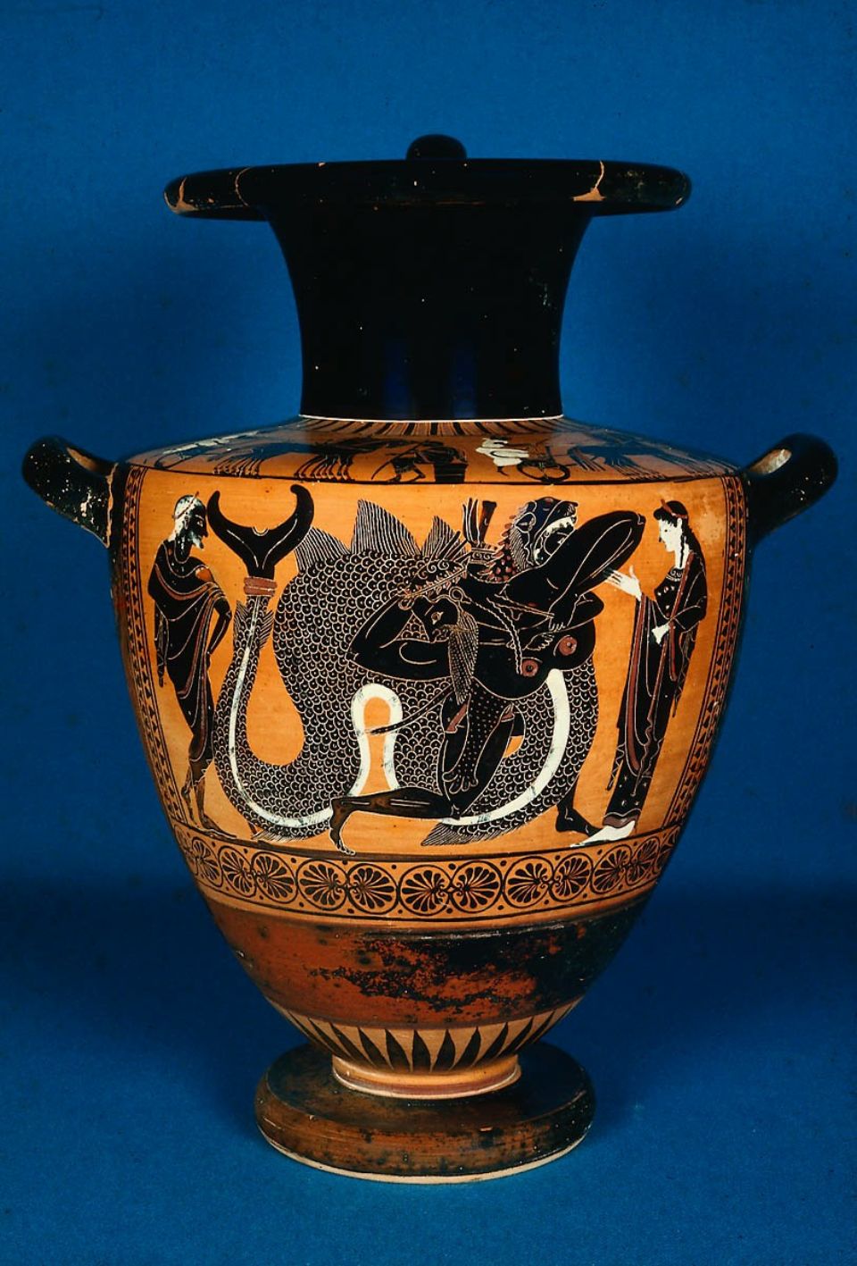 Ο Αχελώος, ο θεός του μακρύτερου ποταμού στον ελληνικό χώρο, που διέτρεχε την Αιτωλία, έπαιρνε τη μορφή ταύρου , φιδιού με κεφάλι Σατύρου ή/και Κενταύρου ή ταύρου με κεφάλι ανθρώπου, κένταυρου, ιχθυοειδούς όντος. Οι περιπέτειές του αποτυπώθηκαν σε πολλά αττικά αγγεία του 6ου και του 5ου αι. π.Χ., αλλά και σε έργα των Ετρούσκων, που ήταν ιδιαίτερα αφοσιωμένοι σε αυτόν τον θεό, όπως αγγεία, περικεφαλαίες, τρίποδες, κοσμήματα. (Εικ. 24, 25, 26, 27, 28, 29, 30)