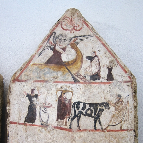 Τελικά, ο θάνατος μοιάζει να είναι μια βουτιά του ανθρώπου από αυτόν τον κόσμο στον άλλον, και αυτή η βουτιά παριστάνεται σε τοιχογραφίες από τον τάφο του Κυνηγιού και του Ψαρέματος η μία, του Βουτηχτή η άλλη, μια απαράμιλλη τεχνική κατάδυση, όχι ένα παιγνίδι ζωής αλλά βουτιά στον άλλον κόσμο [ Eικ. 49, 50]. Ο Emanuele Greco, περιγράφοντας τη γραπτή διακόσμηση στο εσωτερικό μέρος της καλυπτήριας πλάκας του Τάφου του Βουτηχτή, σημειώνει τα εξής:
