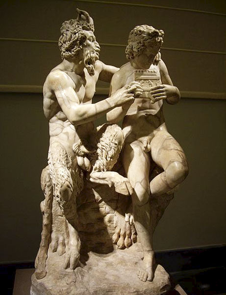 Ο Πάνας διδάσκει στον Δάφνι πώς να παίζει τον αυλό. Ρωμαϊκό μαρμάρινο άγαλμα, αντίγραφο ελληνιστικού πρωτοτύπου του 2ου αι. π.Χ., που αποδίδεται στον Ρόδιο γλύπτη Ηλιόδωρο.