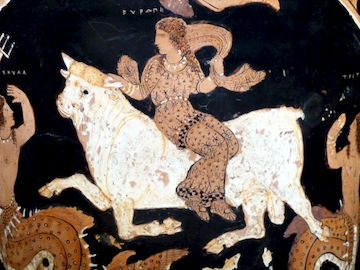 Η Ευρώπη και ο ταύρος. Ερυθρόμορφος κρατήρας από την Ποσειδωνία, 340 π.Χ.