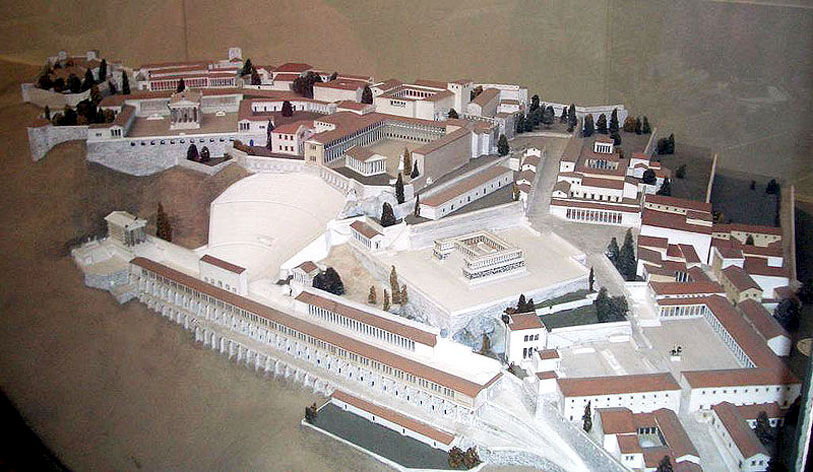 Μακέτα που αναπαριστά την Ακρόπολη της Περγάμου κατά τον 2ο αι. π.Χ. μαζί με τις μεταγενέστερες ρωμαϊκές προσθήκες.
