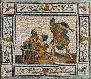 Aντίγραφο ρωμαϊκού ψηφιδωτού του 18ου αι. που εικονίζει τη σκηνή του φόνου του Αρχιμήδη από Ρωμαίο στρατιώτη.