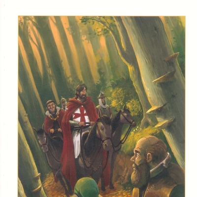 Από τη στροφή του δρόμου ανάμεσα στα δέντρα, ξεπρόβαλαν δέκα καβαλάρηδες. Ο Γουάμπα αναγνώρισε ανάμεσά τους τον Άιμερ, ηγούμενο του αβαείου του Ζορβό. Δίπλα του ήταν ένας ρωμαλέος, ηλιοκαμένος άντρας που φορούσε μια αλυσιδωτή πανοπλία και κράνος. Στον κόκκινο μανδύα του ξεχώριζε ένας λευκός σταυρός που φανέρωνε ότι ο καβαλάρης ήταν μοναχός – πολεμιστής και ανήκε στο τάγμα των Ιπποτών του Ναού.