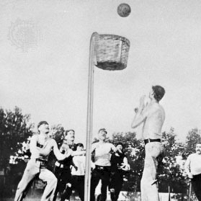 Γεννιέται το μπάσκετ. Στο πρώτο παιχνίδι που έγινε στο κολέγιο YMCA στις ΗΠΑ είχαν στερεώσει καλάθια ροδάκινων στους τοίχους του γυμναστηρίου που αργότερα, το 1893, αντικαταστάθηκαν από δίχτυα.