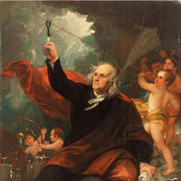 Ο Φραγκλίνος ανακαλύπτει πως οι κεραυνοί είναι ηλεκτρισμός και διατυπώνει την αρχή του αλεξικέραυνου: ένας μεταλλικός αγωγός μπορεί να διοχετεύει το ηλεκτρικό ρεύμα των κεραυνών ακίνδυνα στη γη, προστατεύοντας τους ανθρώπους από τον κίνδυνο των κεραυνών.