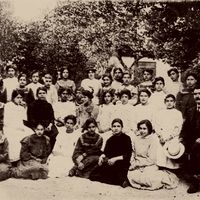 Όταν πρωτομπήκα στην τάξη μου, βρήκα εμπρός μου 25 μαθήτριες. Όλες κάθονταν με θαυμαστή ησυχία∙ τα χέρια σφιχτοδεμένα και τα μάτια ανυπόμονα καρφωμένα απάνω μου∙ άλλα ήταν περίεργα, άλλα φοβισμένα, και άλλα ερευνούσαν ειρωνικά, αν θα μπορούσαν να με βάλουν στο χέρι. Από τα πρόσωπα τα πιο πολλά ωχρά. […]